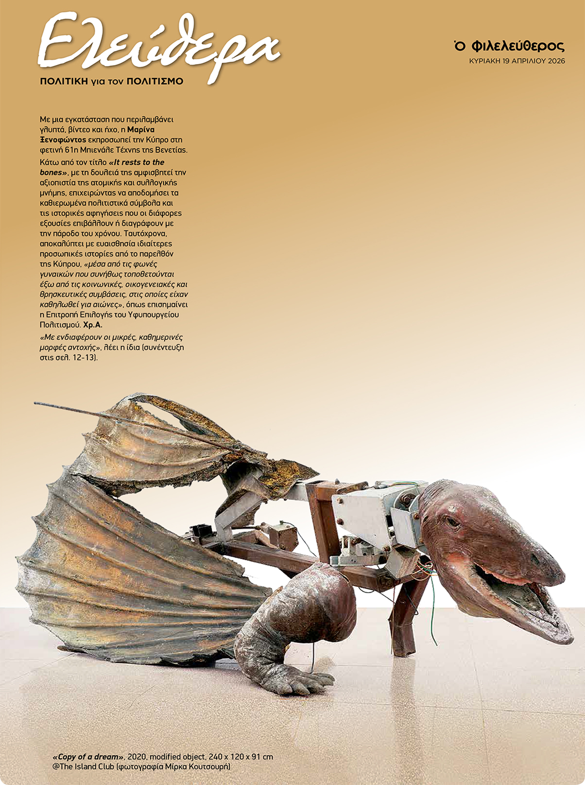 Ιδιοκτησία / copyright © PHILELEFΤHEROS PUBLIC COMPANY LIMITED Απαγορεύεται η αναδημοσίευση, η αναπαραγωγή, η αποδελτίωση, η αποστολή και/ή η κοινοποίηση, ολική, μερική ή περιληπτική, κατά παράφραση, διασκευή ή απόδοση του περιεχομένου (κειμένου ή φωτογραφίας) με οποιονδήποτε τρόπο, μηχανικό, ηλεκτρονικό, φωτοτυπικό, ηχογράφηση ή άλλο, χωρίς τη γραπτή έγκριση ή άδεια του εκδότη.