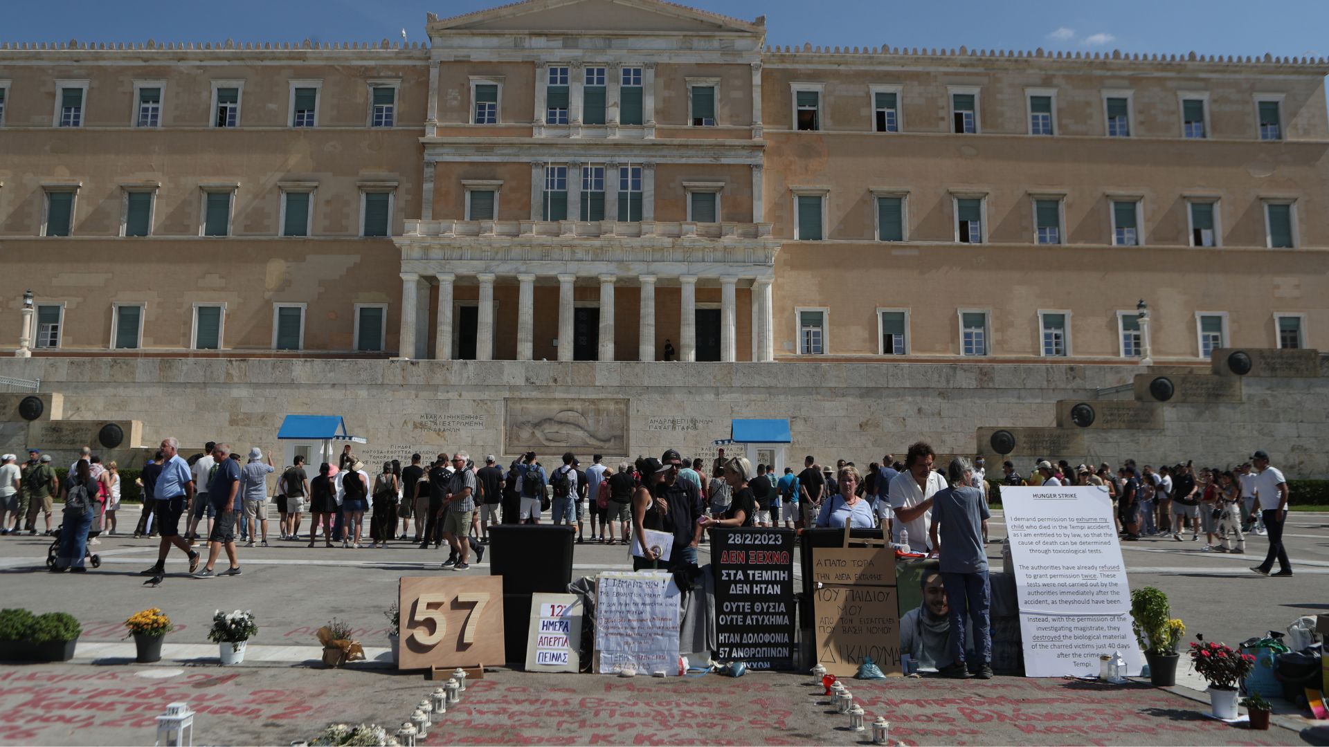 Εδώ και εβδομάδες, ο χώρος του Αγνώστου Στρατιώτη όπως τον ξέρουμε, έχει βεβηλωθεί από κάποιους που θέλουν να διαμαρτυρηθούν για κάτι. Όπως ένας πατέρας που έχασε το παιδί του στο σιδηροδρομικό δυστύχημα των Τεμπών τον Φεβρουάριο του 2023, στο οποίο σκοτώθηκαν 57 άνθρωποι, νέοι οι περισσότεροι και ζητά να του επιτρέψουν να κάνει εκταφή του γιού του.