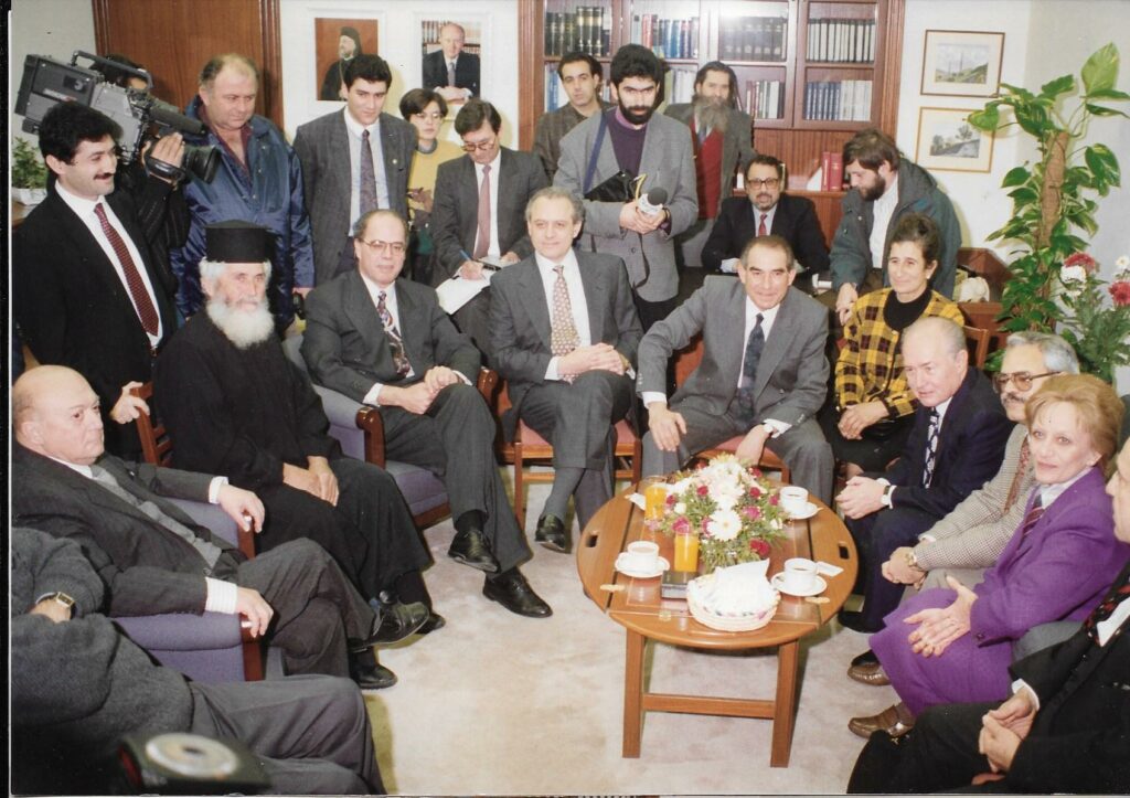 - Η δεύτερη φωτογραφία είναι από την υποβολή υποψηφιοτήτων για τις Προεδρικές Εκλογές του 1993. Ο Γιώργος Βασιλείου, μαζί με όσους πρότειναν και υποστήριζαν την υποψηφιότητά του. Και οι δημοσιογράφοι να είμαστε στοιβαγμένοι μέσα στο γραφείο του γενικού διευθυντή του υπουργείου Εσωτερικών παρακολουθώντας από κοντά το τελετουργικό της υποβολής υποψηφιοτήτων.