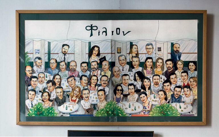 Πρόσφατα, γιόρτασε τα 30 του χρόνια. Και σε ένα αφιέρωμά της Ξένιας Κουναλάκη στην «Καθημερινή», δημοσίευσε αυτήν την υπέροχη εικόνα, με αρκετούς από τους πιο γνωστούς φίλους του «Φίλιον», που βρίσκεται ι καδραρισμένη σε τοίχο του καφέ. Και τη φιλοτέχνησε ο Βαγγέλης Ζαβός.