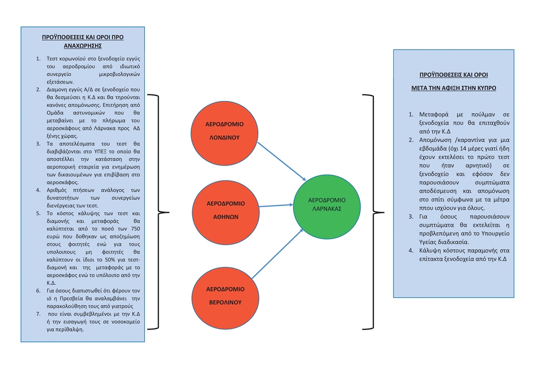 3. Εξεύρεση ιδιωτικών συνεργείων εκτέλεσης τεστ κορωνοϊού στα ξενοδοχεία εγγύς των αεροδρομίων με δυνατότητα αποτελεσμάτων εντός 48 ωρών το αργότερο.