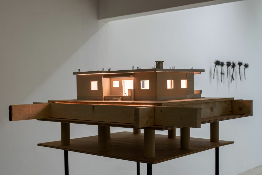 Η μακέτα, κατασκευασμένη το 2019, κατά την περίοδο του εγκλεισμού, με εντυπωσιακή λεπτομέρεια και ακρίβεια, μεταφέρει αυτό το κατασκεύασμα, που βιώνεται ταυτόχρονα ως γνώριμο και ανοίκειο, στο επίπεδο της μικρογραφίας, αναδεικνύοντας άλλες πτυχές του: το πάτωμα αφαιρείται και στο κέντρο εισάγεται μια ακανθώδης κεραμική φόρμα.