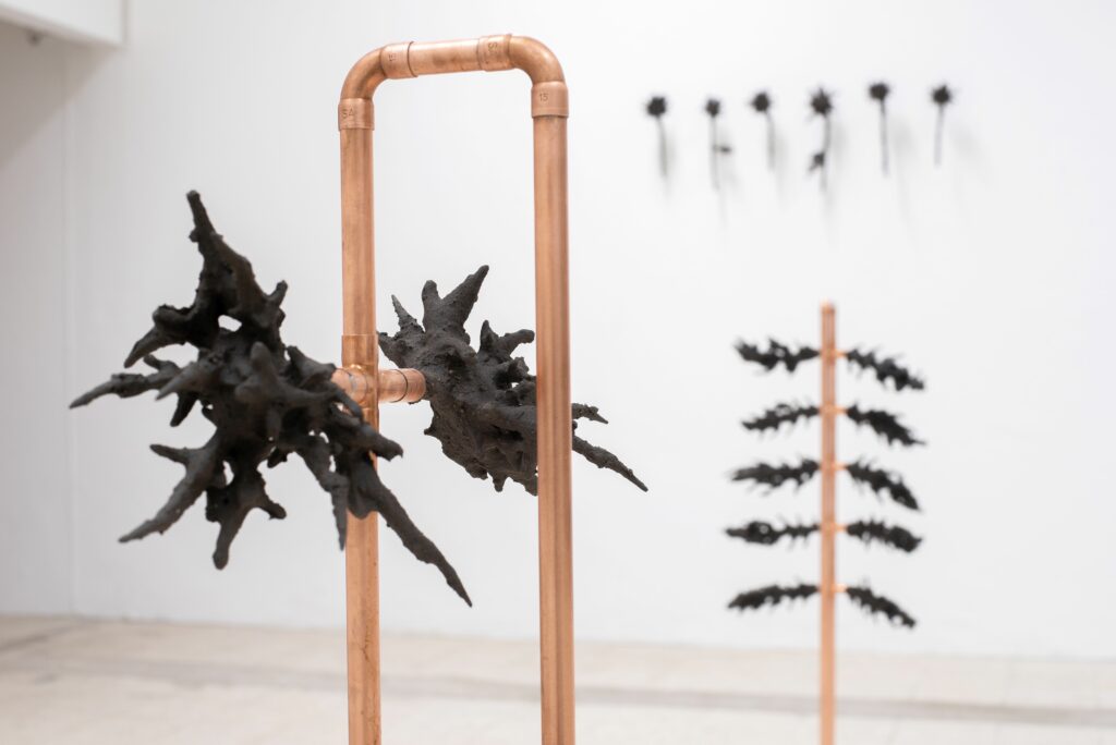 Αν αυτές οι δύο συγκροτήσεις δεν λειτουργούν ως διακριτές οντότητες αλλά ως ένα κοινό σύστημα ανατροφοδότησης που συνδέει το οργανικό με το ανόργανο, το ορατό με το κρυμμένο και το αόρατο, τότε οι γλυπτικές εγκαταστάσεις της έκθεσης αποκτούν διαφορετική αναγνωσιμότητα.