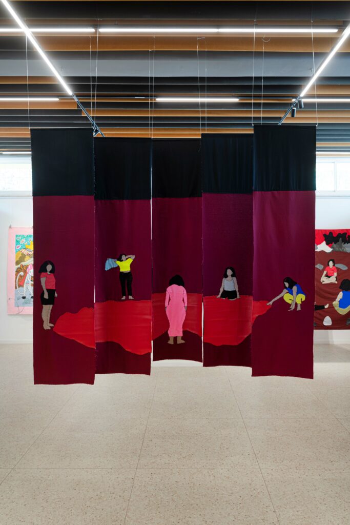 Οι τρεις καλλιτέχνιδες που συμμετέχουν – η Μαριάντρη, η Nurtane Karagil και η Sophie Utikal – προσεγγίζουν αυτά τα ζητήματα μέσα από διαφορετικές πρακτικές. Τα έργα τους, που περιλαμβάνουν σχέδια, πίνακες, έργα από υφάσματα και εγκαταστάσεις, κινούνται ανάμεσα στο προσωπικό και το συλλογικό, στο οικείο και το ξένο, στο τραύμα και τη θεραπεία.