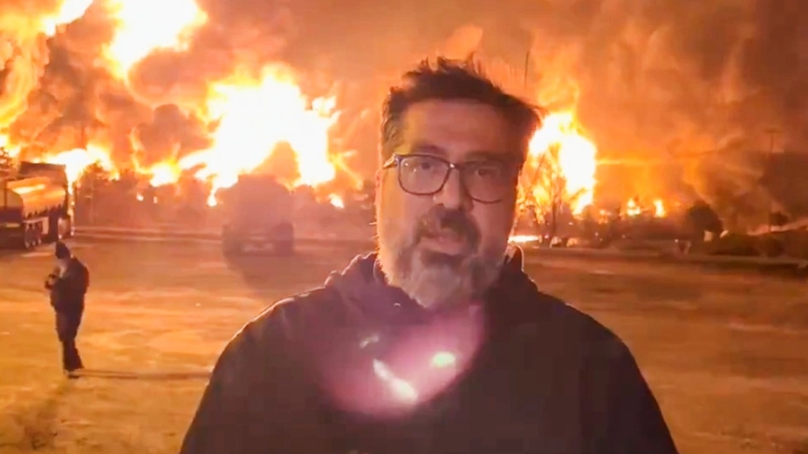 Κόλαση στην Τεχεράνη: Ιρανός ρεπόρτερ μεταδίδει ατάραχος μπροστά από φλεγόμενες εγκαταστάσεις πετρελαίου – Δείτε βίντεο