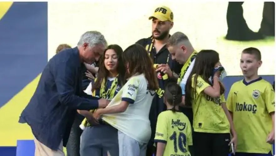 Με την ολοκλήρωση των δηλώσεων Κοτς και Μουρίνιο σηκώθηκαν για τις καθιερωμένες φωτογραφίες με τη φανέλα της Φενέρ κι εκεί άρχισε το σόου!