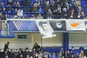 Ακόμη και 69 χρόνια μετά τον άνανδρο απαγχονισμό του από τους Άγγλους δυνάστες, ο Ευαγόρας Παλληκαρίδης συνεχίζει να ενοχλεί! Σε βαθμό που οι αρχές του Σταδίου «Στάμφορντ Μπριτζ» στο Λονδίνο, με οδηγίες της ΟΥΕΦΑ, απαίτησαν να κατέβει ένα πανό με τη φωτογραφία του Ευαγόρα Παλληκαρίδη που είχαν αναρτήσει στις εξέδρες οι οπαδοί της Πάφος FC.