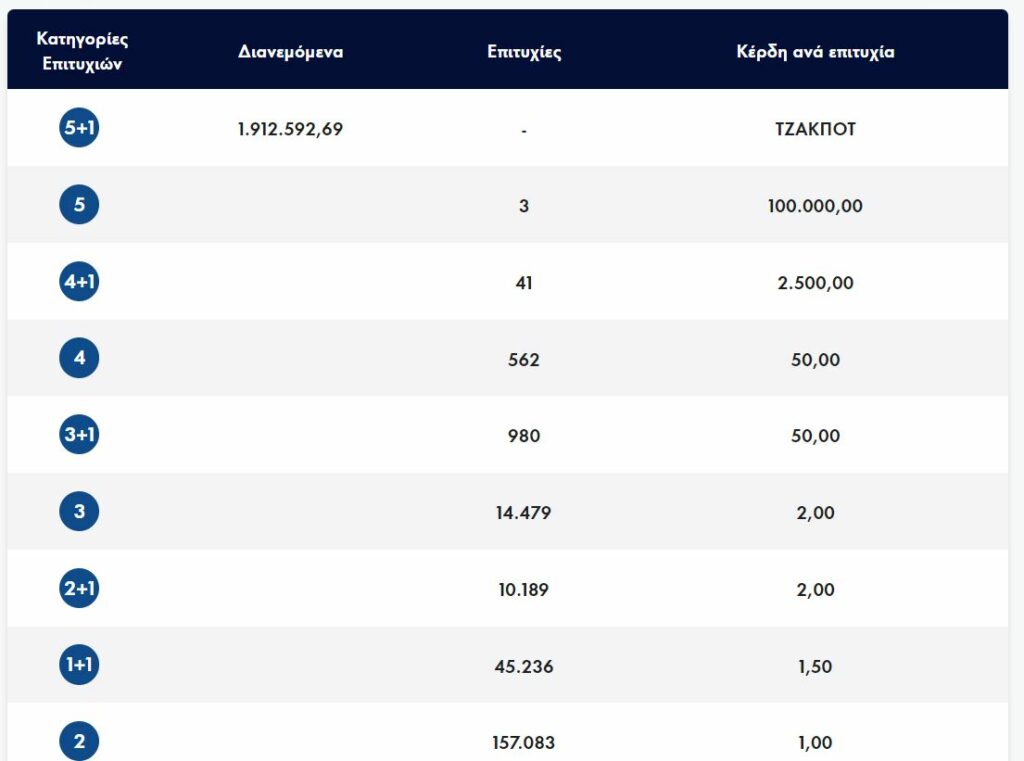 Συγκεκριμένα, στην πρώτη κατηγορία η οποία κλήρωνε συνολικά 1,9 εκατ. ευρώ δεν βρέθηκε τυχερός και έτσι στην επόμενη κλήρωση της Κυριακή κληρώνονται 2,5 εκατ. ευρώ.