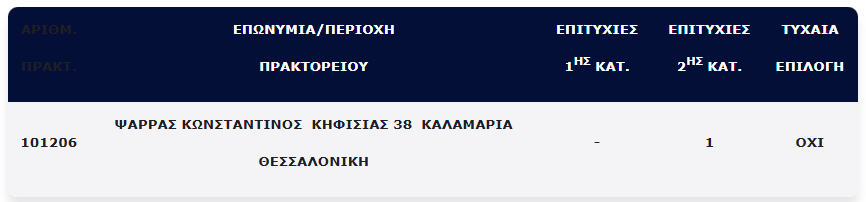 Επίσης, ένα (1) τυχερό δελτίο βρέθηκε στη 2η κατηγορία (5), το οποίο κερδίζει το ποσό των €100.000,00.