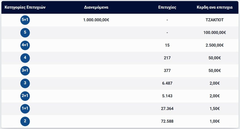 Δεν βρέθηκαν τυχεροί ούτε στη δεύτερη κατηγορία με των €100.000.