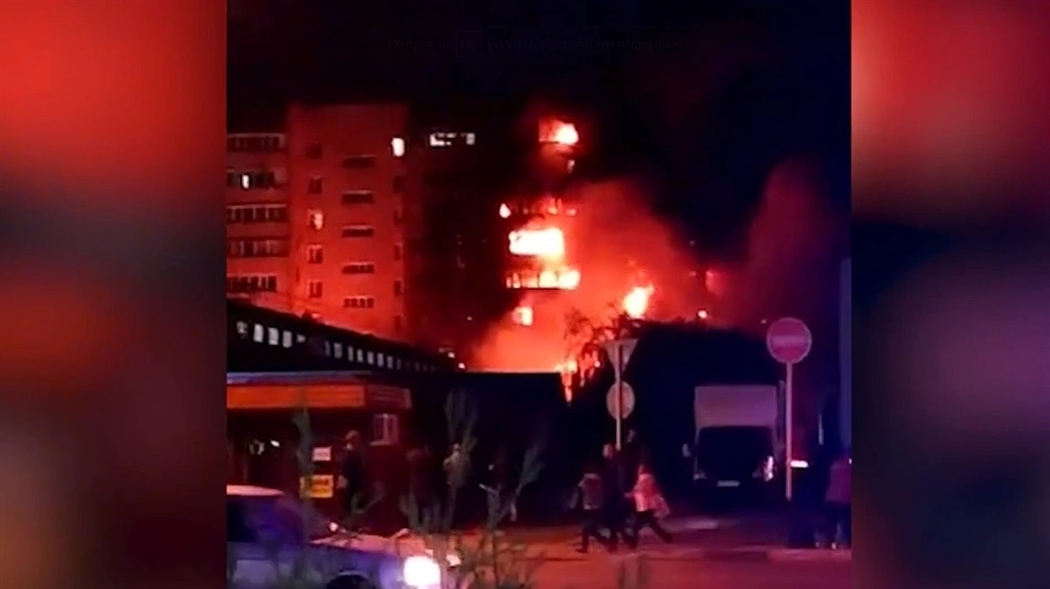 Αυτόπτες μάρτυρες κάνουν λόγο για κτίριο εννέα ορόφων, το οποίο φλέγεται, πιθανόν από τα καύσιμα του αεροσκάφους. Οι τοπικές αρχές αναφέρουν ότι φλέγονται τέσσερις όροφοι.