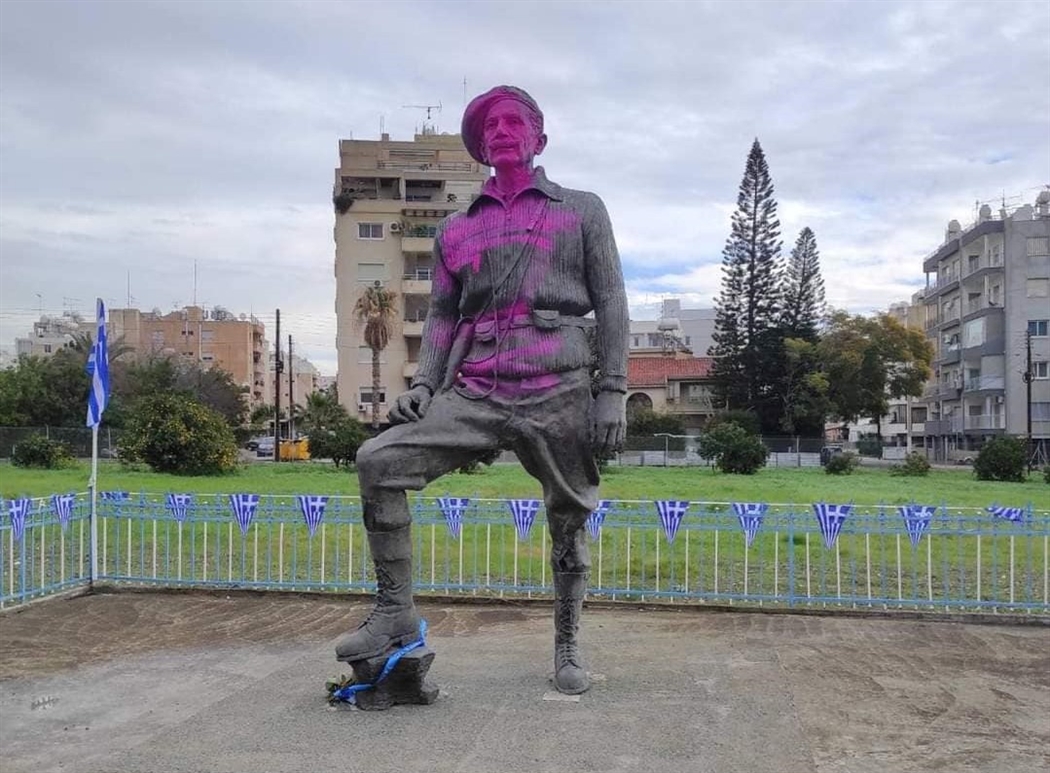 Βεβήλωσαν για άλλη μια φορά το μνημείο του Γρίβα στη Λεμεσό, αφού το βράδυ της Δευτέρας άγνωστος/οι έριξαν μπογιά στο μνημείο του.