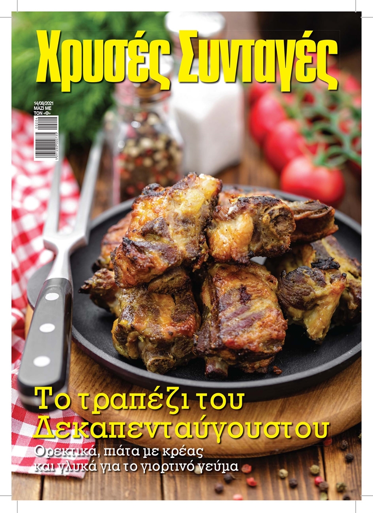 Στο νέο τεύχος των Χρυσών Συνταγών που κυκλοφορεί αυτό το Σάββατο 14 Αυγούστου, σε εύχρηστο μέγεθος, σας παρουσιάζουμε τις καλύτερες συνταγές με κρέας, ορεκτικά και γλυκά για το τραπέζι του Δεκαπενταύγουστου.