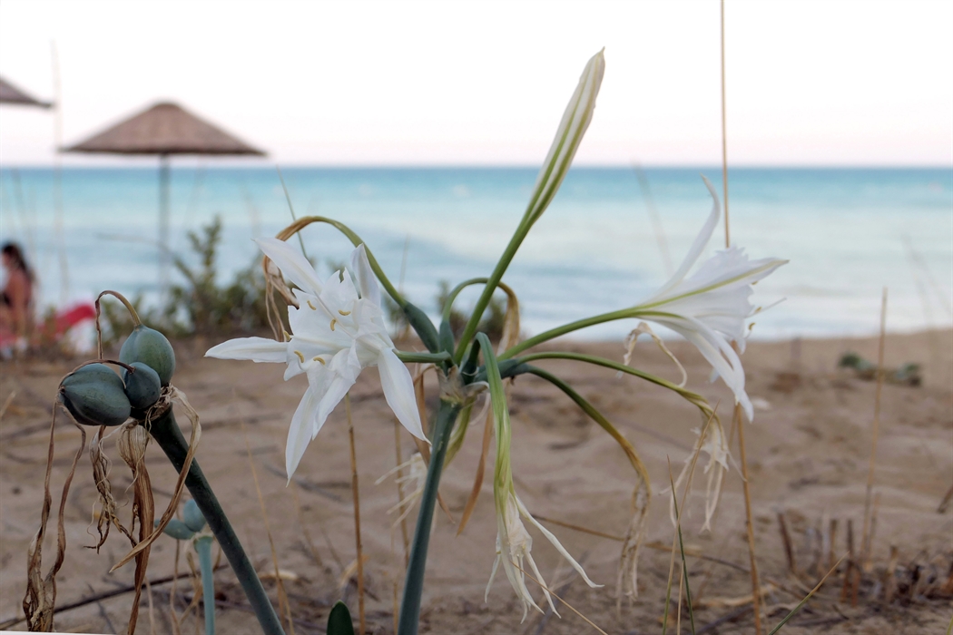 Η παραλία της Χρυσής Ακτής στη περίκλειστη πόλη της Αμμοχώστου στολίστηκε και φέτος από τα ανθισμένα λευκά κρίνα της θάλασσας. Ανάμεσα στις ξαπλώστρες και ομπρέλες που έχουν στηθεί από το ψευδοκράτος και μπροστά από τα ερειπωμένα ξενοδοχεία και διαμερίσματα των Αμμοχωστιανών, εξακολουθούν να ανθίζουν και να ομορφαίνουν την παραλία της κατεχόμενης πόλης.