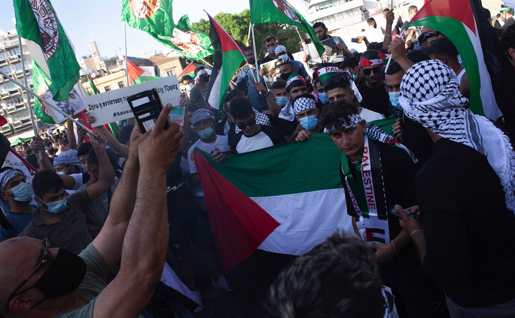 Εκατοντάδες Παλαιστίνιοι πραγματοποίησαν το απόγευμα της Κυριακής πορεία διαμαρτυρίας στο κέντρο της Λευκωσίας, για τις συμπλοκές που πραγματοποιούνται τις τελευταίες ημέρες στη Λωρίδα της Γάζας.