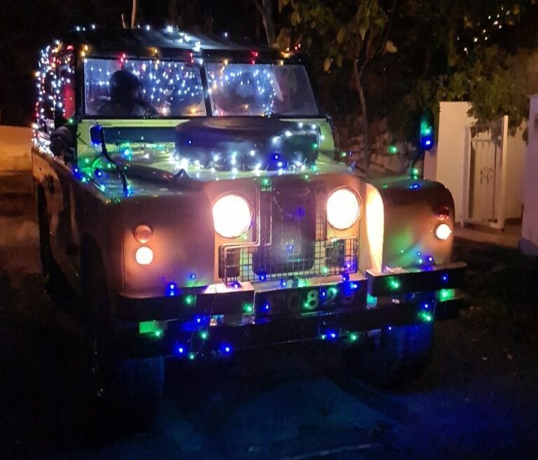 Αυτό το κλασικό Land Rover, δεν ήταν ένα από αυτά που κυκλοφορούν ακόμη στους δρόμους της κυπριακής υπαίθρου. Στολισμένο από τη μια άκρη του στην άλλη με πολύχρωμα λαμπιόνια, ξεχώριζε όταν εμφανίσθηκε στους δρόμους της Γιόλου τα Χριστούγεννα αυτά.
