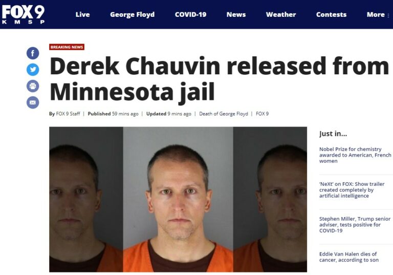 Ελεύθερος αφέθηκε, σύμφωνα με αμερικανικά ΜΜΕ, ο πρώην αστυνομικός της Μινεάπολης που κατηγορήθηκε για το θάνατο του Τζορτζ Φλόιντ, Ντέρεκ Τσάβιν.