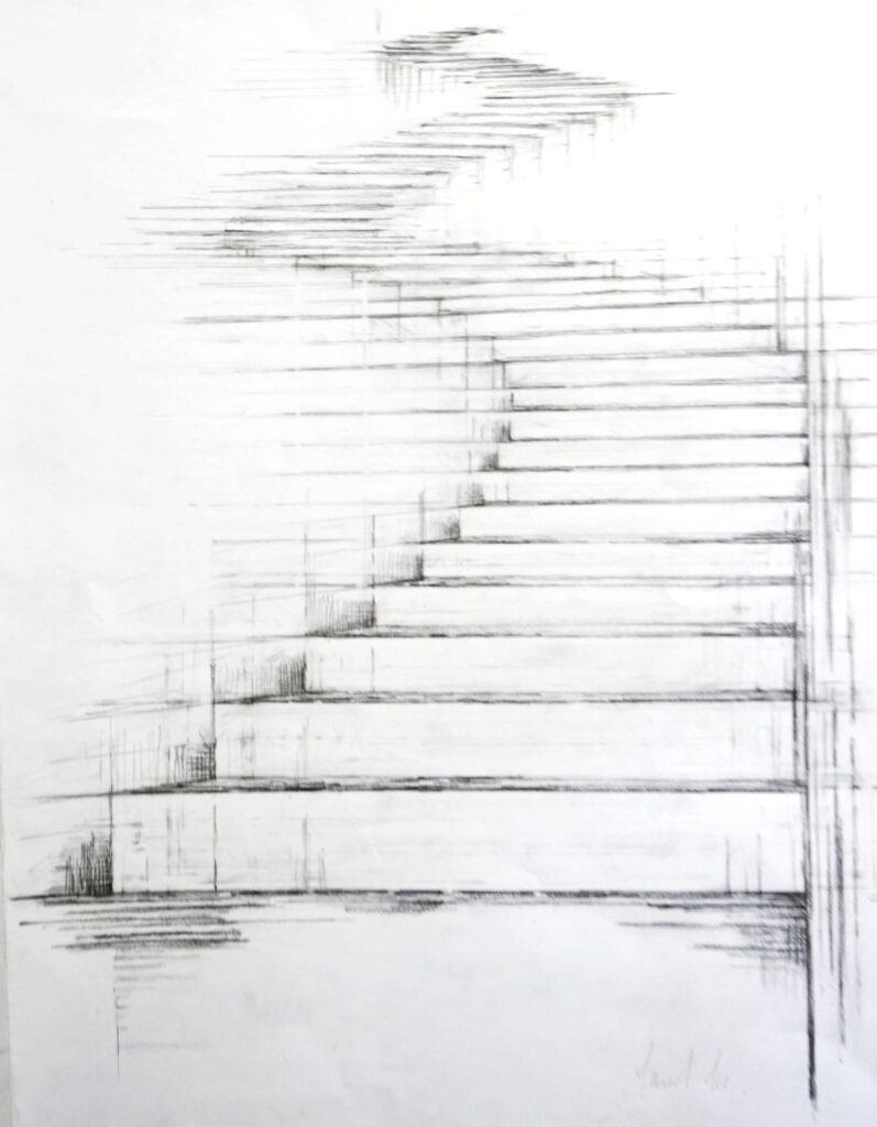 Στη νέα αυτή ενότητα έργων, συνεχίζει τη μακρόχρονη διερεύνησή της γύρω από τη γραμμή, την επανάληψη και τη χωρική δομή- τα βασικά στοιχεία που χαρακτηρίζουν τη γλώσσα της. Το σχέδιο παραμένει η βάση της δημιουργικής της διαδικασίας, λειτουργώντας ταυτόχρονα ως εργαλείο μελέτης και ως ολοκληρωμένο έργο. Μέσα από τη συστηματική επανάληψη και διασταύρωση γραμμών, γεννιούνται χώροι και μορφές που υποβάλλουν αρχιτεκτονικές ή φανταστικές δομές, επεκτεινόμενες μέσω της προοπτικής προς ένα αίσθημα απείρου.