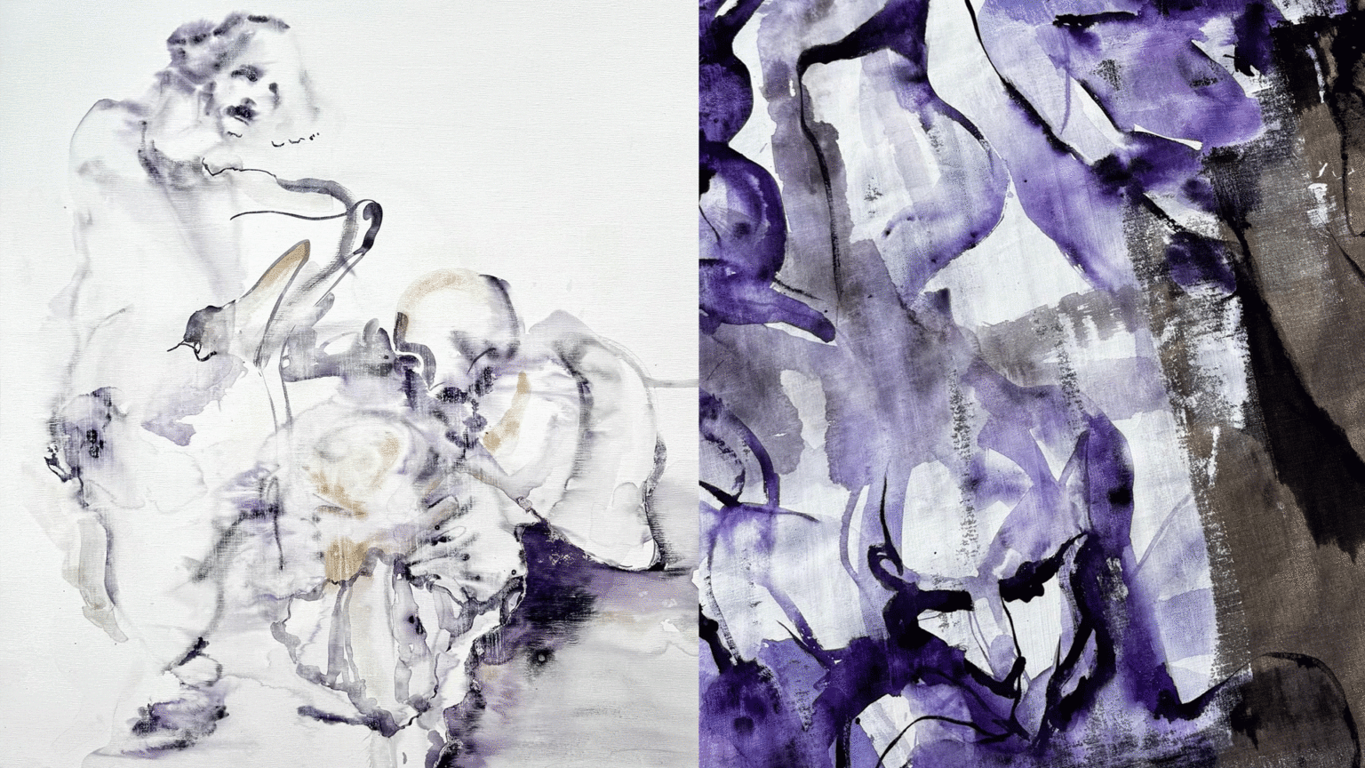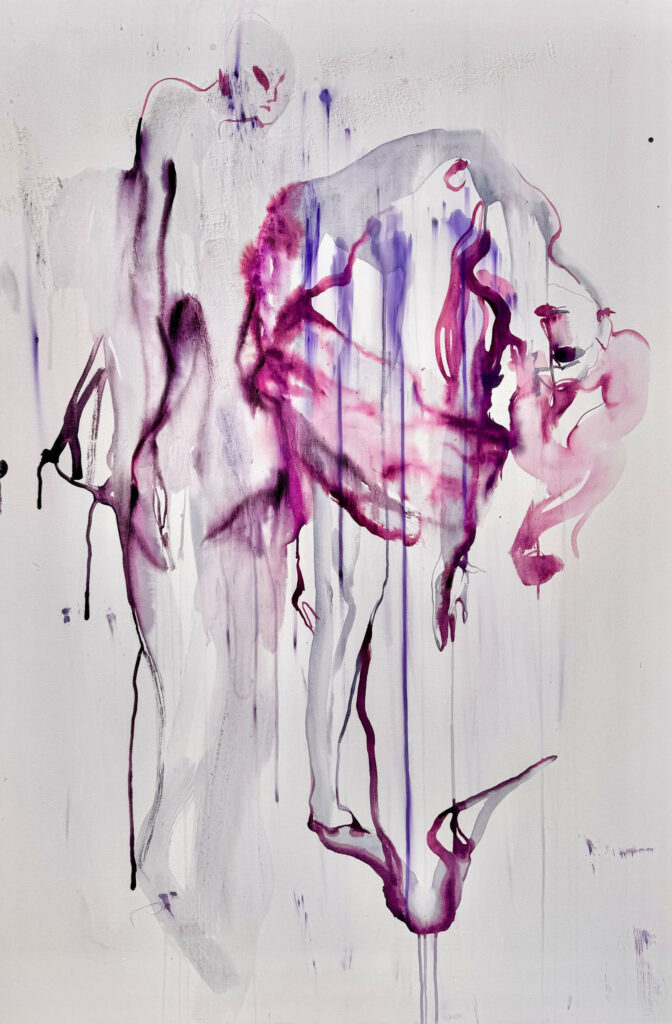 Η Ξένια Κουντάσοβα ανοίγει ελαφρά την αυλαία για να δει το εύθραυστο όριο ανάμεσα στο φυσικό και το ψηφιακό, τον οριακό χώρο όπου υπάρχουν ψηφιακές οντότητες, ή μάρτυρες. Οι ακουαρέλες της σε ακατέργαστο καμβά λειτουργούν σαν ζωντανοί οργανισμοί: η χρωστική διαχέεται, διαρρέει και διαλύεται, δημιουργώντας μοτίβα που μοιάζουν να εμφανίζονται από μόνα τους.