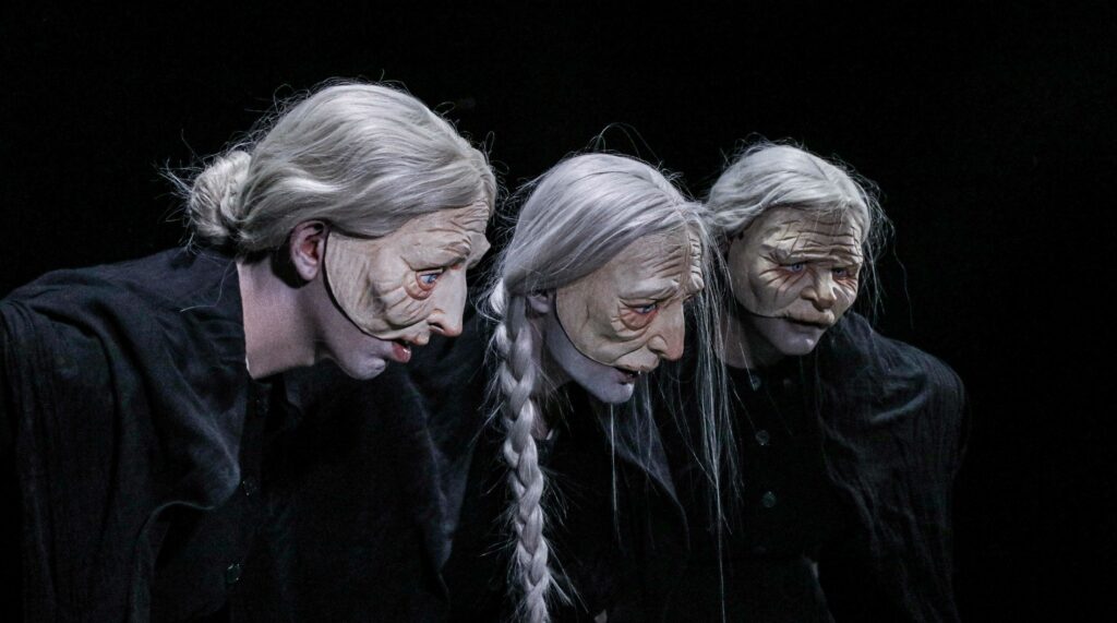 Η μεταμόρφωση είναι άκρως εντυπωσιακή κι ανατρεπτική. Φοράνε μάσκες, με ρυτίδες που έχει χαράξει ο χρόνος, έχουν βασανισμένα, από τη χειρωνακτική εργασία, σώματα, «αφρόντιστα», αόρατα κάτω από τα μαύρα ρούχα και ασήμαντα, όταν δεν έχουν εκπληρώσει την αποστολή τους, την «αναπαραγωγή». Μιλούν για τη ζωή τους στη σκιά της κυρίαρχης ανδροκρατικής εξουσίας, συνδιαλέγονται μεταξύ του οικείου και του αρχετυπικού, της ακίνδυνης «γιαγιάς» και της επικίνδυνης θεραπεύτριας και μιλάνε γι’ αυτά που έμαθαν από τις παλιές, αυτά που έπαθαν ως γυναίκες και αυτά που παραδίδουν στις επόμενες. «Οι Γριές που μαζεύουν την τσουκνίδα» είναι μια παράσταση που δεν βλέπεις. Τη θυμάσαι. Είναι ένας φόρος τιμής στις γυναίκες που μας μεγάλωσαν. Στις γιαγιάδες μας. Στις θεραπεύτριες της ζωής μας.