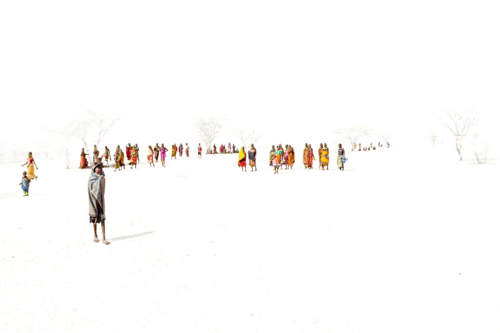 Σ’ αυτόν τον άνυδρο τόπο, όπου ελάχιστα δέντρα διακόπτουν την απεραντοσύνη του εδάφους, ο φακός της Μαρίνας Σιακόλα εστιάζει σε μια φυλή τόσο ζωντανή και εκφραστική που μοιάζει να «χρωματίζει» το τοπίο με την ίδια της την παρουσία. Οι φιγούρες των Τουρκάνα προβάλλουν στον λευκό ορίζοντα σαν πολύχρωμα τοτέμ ζωής. Εικόνες που αποτυπώνουν τη βαθιά αντίθεση ανάμεσα στη σκληρότητα της γης και στη ζωτικότητα των ανθρώπων της.