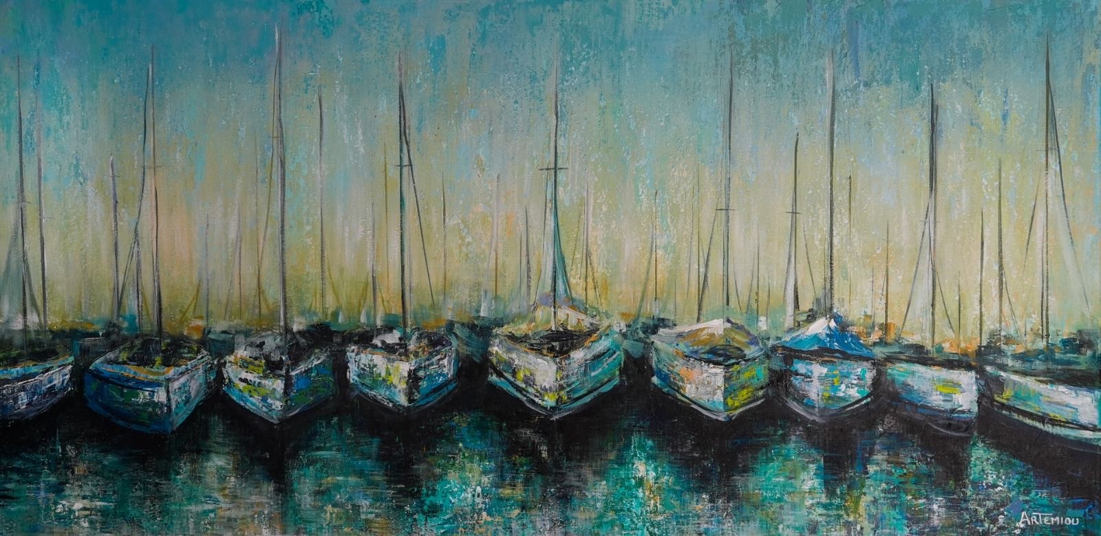 Παρουσιάζονται 35 έργα ζωγραφικής διαφόρων διαστάσεων, με ακρυλικό και μικτά υλικά σε καμβά και σε ξύλο. Η έκθεση φέρει τον τίτλο «Θαλασσοψυχισμοί» και στην πραγματικότητα διαπραγματεύεται το υγρό στοιχείο όχι μόνο ως τοπίο αλλά και ως ψυχικό και συμβολικό πεδίο — ρευστό, μεταβαλλόμενο, βαθύ και θεραπευτικό.