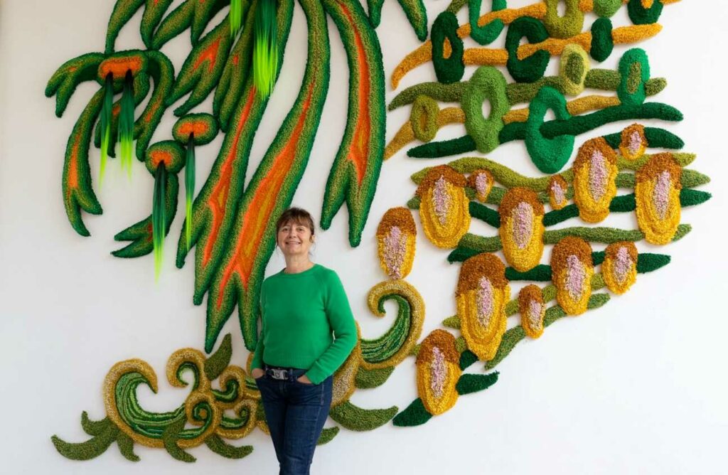 Μέσα από μαλλί, μέταλλο, ύφασμα και σκυρόδεμα, η έκθεση εξερευνά τον τρόπο με τον οποίο η ζωή και η αρχιτεκτονική αλληλοδιαπλέκονται, πώς το νήμα μετατρέπεται ταυτόχρονα σε ανάπτυξη και δομή, μνήμη και κατασκευή.