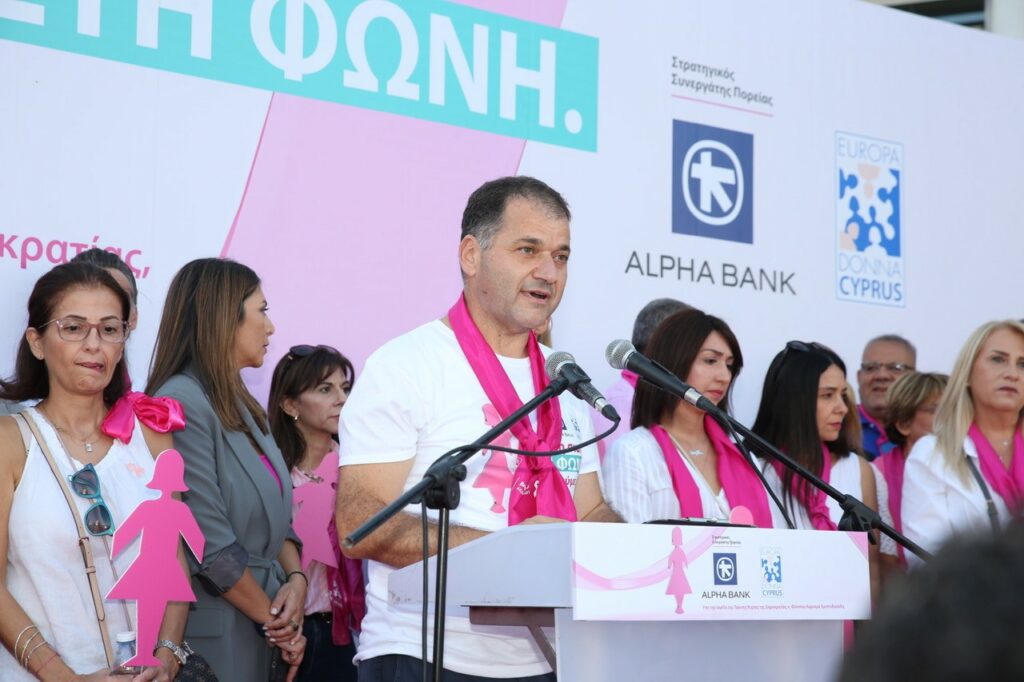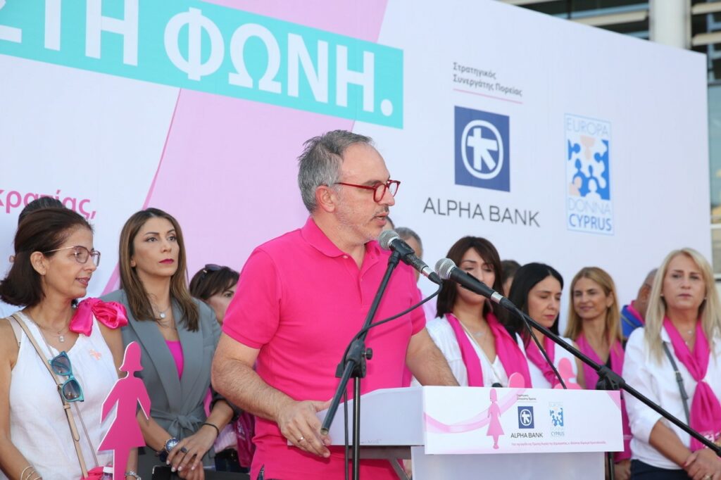 Όπως τόνισε στον χαιρετισμό του ο CEO της Alpha Bank Κύπρου, Μίλτος Μιχαηλάς: «Για την Alpha Bank Κύπρου, η φετινή χρονιά είναι ορόσημο. Από φέτος, υιοθετούμε επίσημα την Πορεία, κορυφώνοντας μια συνεργασία με την Europa Donna Κύπρου που οικοδομήθηκε σταθερά όλα τα προηγούμενα χρόνια. Μια στήριξη που είναι παράλληλα και δέσμευση. Δέσμευση ότι θέλουμε να είμαστε συμμέτοχοι στην κοινωνική αλλαγή, να σταθούμε δίπλα σε όσες διεκδικούν και να συμβάλουμε σε ένα καλύτερο αύριο».