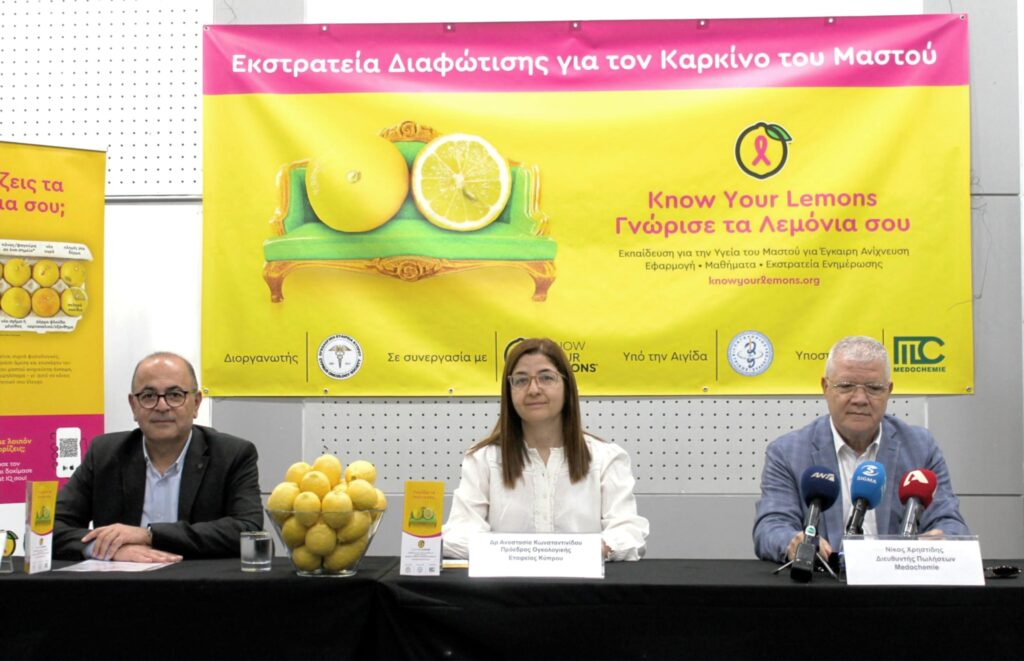 Αυτή η εικόνα έφτασε σήμερα και στην Κύπρο, μέσα από την εκστρατεία «Know Your Lemons – Γνώρισε τα Λεμόνια σου», η οποία παρουσιάστηκε σε συνέντευξη Τύπου που διοργάνωσε η Ογκολογική Εταιρεία Κύπρου (ΟΕΚ) στη Δημοσιογραφική Εστία, στο πλαίσιο του Διεθνούς Μήνα Ενημέρωσης και Ευαισθητοποίησης για τον Καρκίνο του Μαστού.