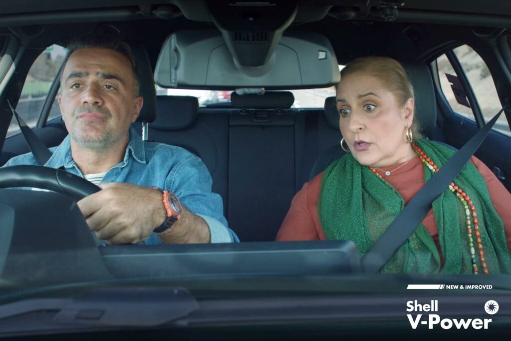 – «Τζαι χωρίς να βάλουμε πεζίνα, μητέρα. Γιατί με Shell V-Power βγάζεις περισσότερα από κάθε διαδρομή, βελτιώνοντας την οικονομία καυσίμου».