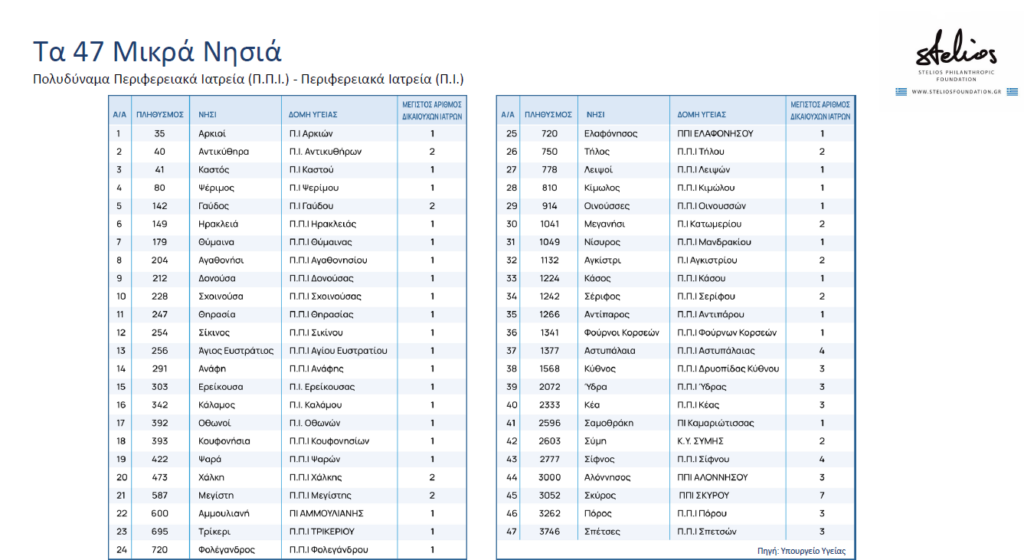 Δωρεά 10 εκατ. ευρώ για την παραμονή 80 ιατρών σε 47 Μικρά Νησιά της Ελλάδας με Περιφερειακά και Πολυδύναμα Περιφερειακά Ιατρεία