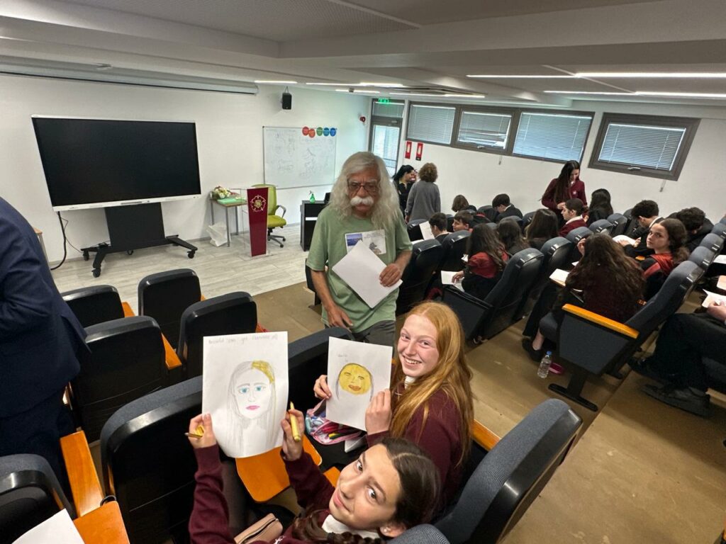 Την πρώτη ημέρα της διημερίδας, οι μαθητές είχαν την ευκαιρία να γνωρίσουν από κοντά τον γνωστό σκιτσογράφο και γελοιογράφο κ. Σώτο Βοσκαρίδη, ο οποίος παρουσίασε την τέχνη της γελοιογραφίας και της καρικατούρας ως μέσο σάτιρας και αφήγησης. Μέσα από μια ζωντανή και διαδραστική παρουσίαση, ο κ. Βοσκαρίδης έδειξε στους μαθητές τη διαδικασία δημιουργίας των έργων του, μοιράστηκε τεχνικές και τους ενέπνευσε να δημιουργήσουν τις δικές τους καρικατούρες σε ένα δημιουργικό εργαστήριο που πραγματοποιήθηκε με μεγάλο ενθουσιασμό.