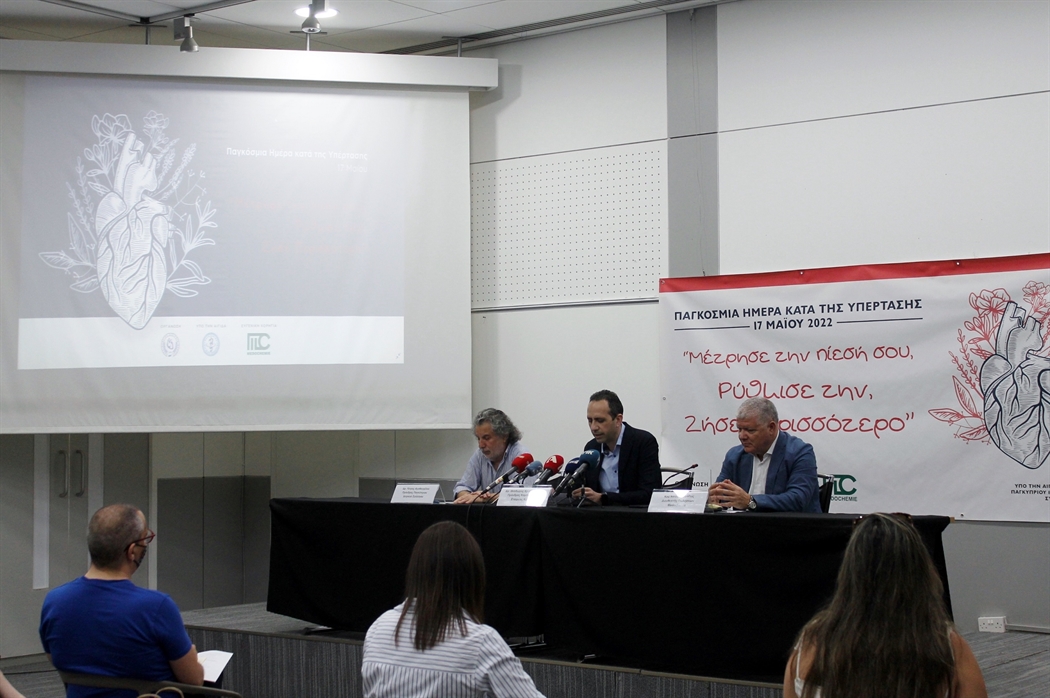 Εκστρατεία Διαφώτισης και Ευαισθητοποίησης διοργανώνει και φέτος η Καρδιολογική Εταιρεία Κύπρου με αφορμή την Παγκόσμια Ημέρα Κατά της Υπέρτασης. Με μήνυμα «Μέτρησε την πίεσή σου,...