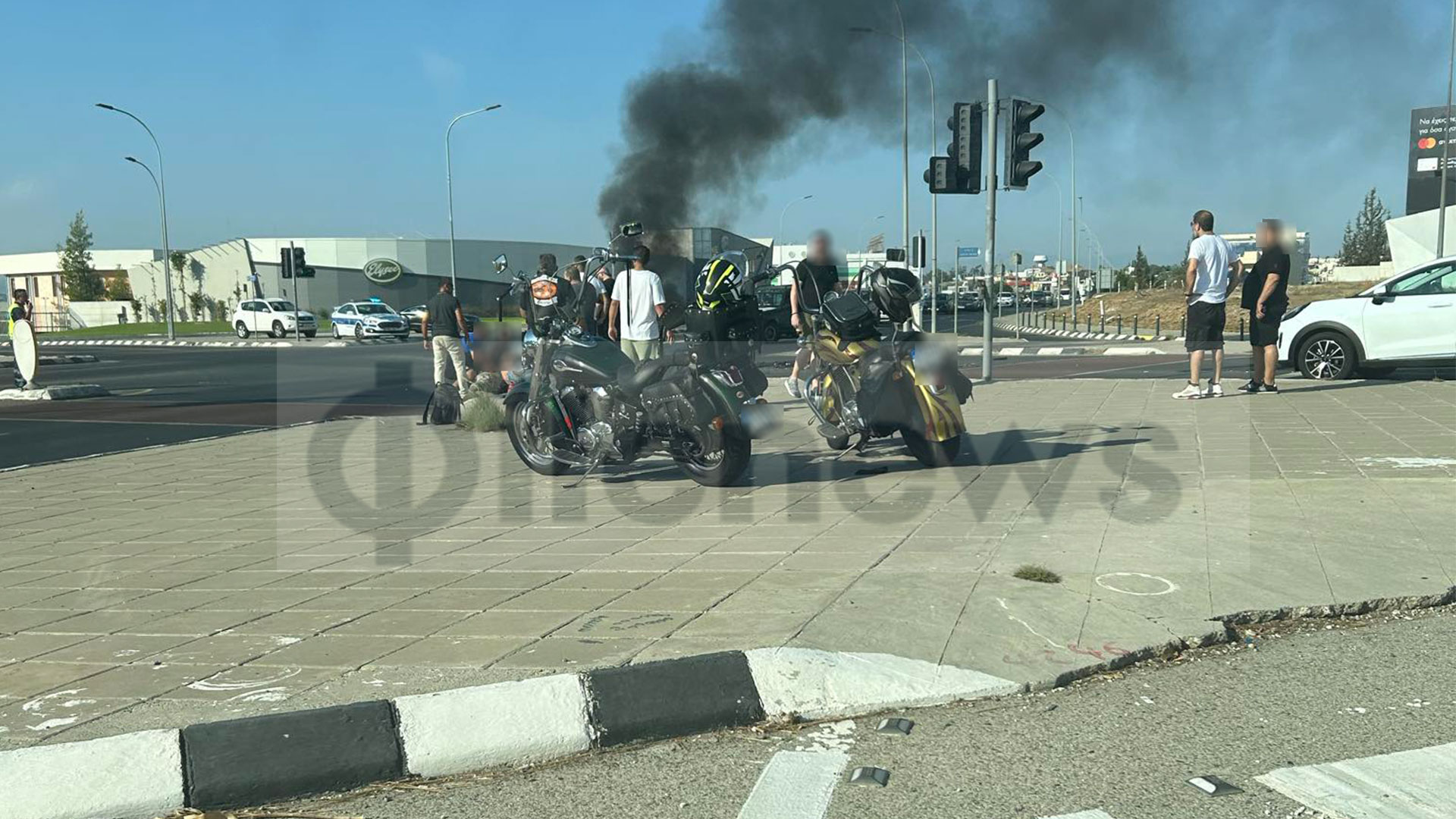 Σημειώνεται ότι μετά την σύγκρουση η μοτοσικλέτα πήρε φωτιά.