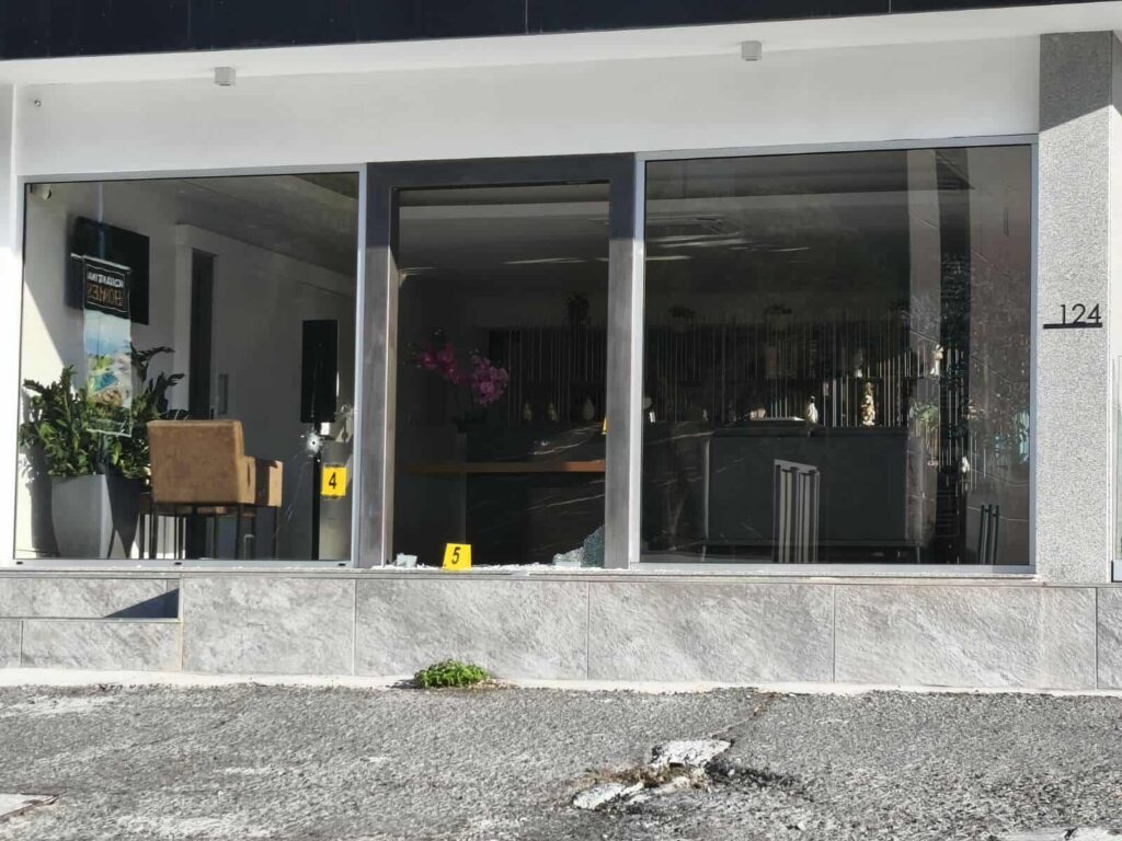 Από τις επιτόπιες έρευνες διαπιστώθηκε ότι ρίφθηκαν 11 πυροβολισμοί από τυφέκιο, οι οποίοι έπληξαν τη γυάλινη είσοδο των γραφείων, προκαλώντας ζημιές στη γυάλινη προθήκη της εισόδου των γραφείων.
