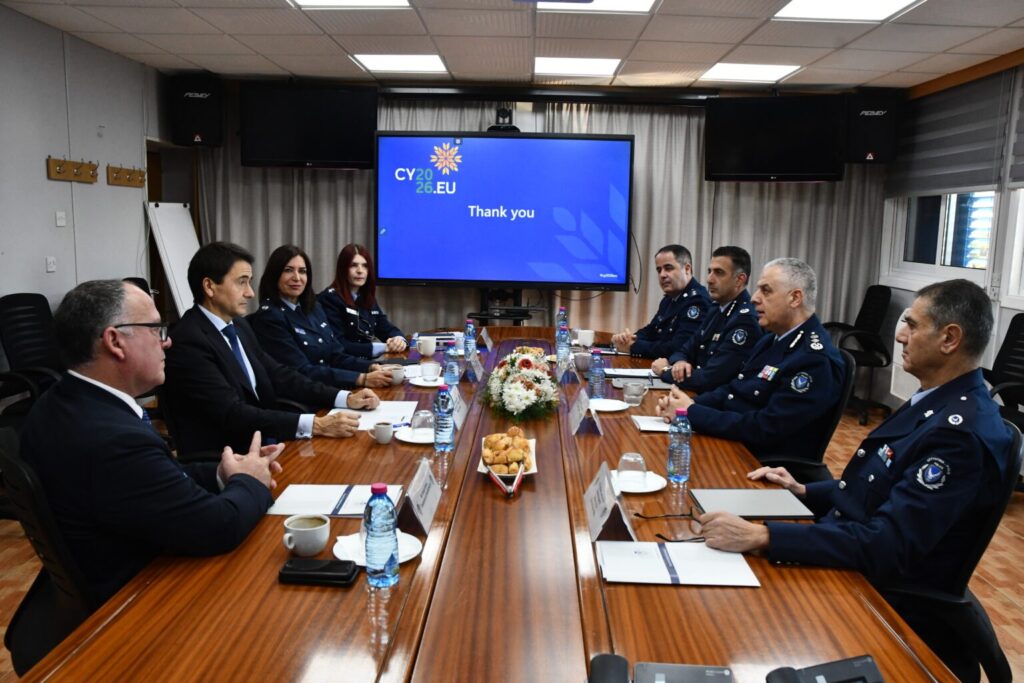 Στο πλαίσιο αυτό, ο Αρχηγός Αστυνομίας, Θεμιστός Αρναούτης, είχε σήμερα συνάντηση στο Αρχηγείο Αστυνομίας με τον κ. Borja Barbosa De Miquel, Γραμματέα του Διοικητικού Συμβουλίου της Europol, με σκοπό την ανταλλαγή απόψεων και τον συντονισμό για την υψηλού επιπέδου επικείμενη συνάντηση του Διοικητικού Συμβουλίου της Europol, η οποία θα πραγματοποιηθεί στην Κύπρο κατά τη διάρκεια της Προεδρίας του Συμβουλίου της Ευρωπαϊκής Ένωσης.