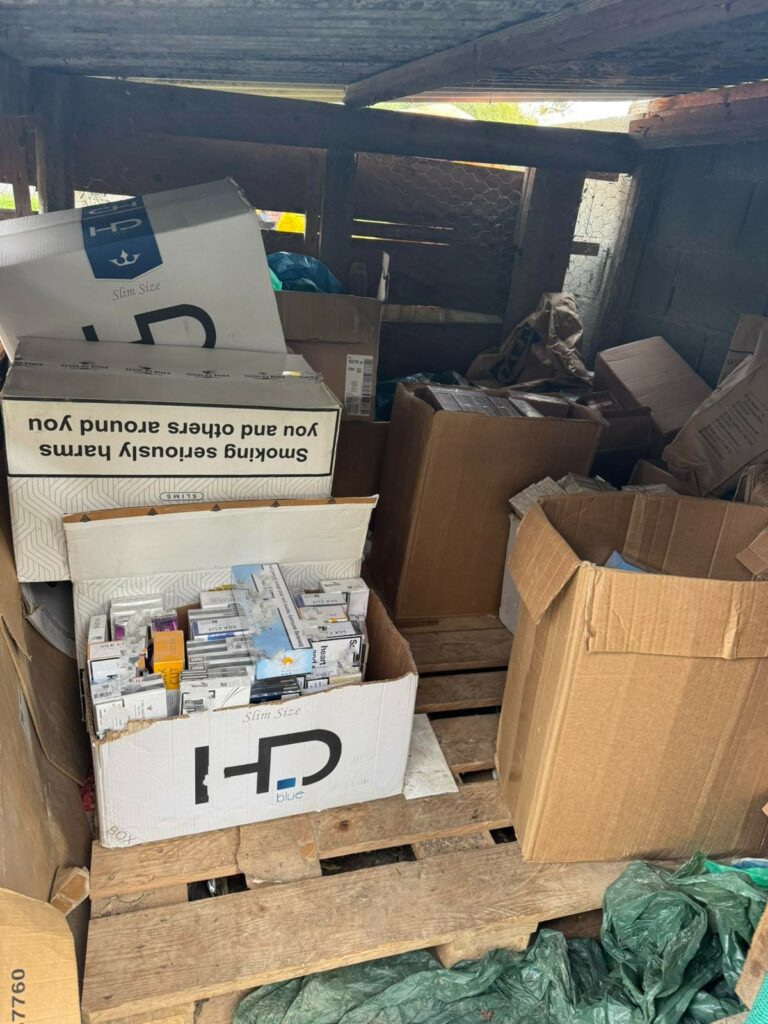 Κατά την έρευνα η οποία διενεργήθηκε στην παρουσία του 69χρονου ιδιοκτήτη της οικίας και υποστατικού, εντοπίστηκαν και κατασχέθηκαν, 124 κούτες θερμαινόμενων τσιγάρων, 1128 κούτες τσιγάρων διαφόρων μαρκών, και 3675 γραμμάρια καπνού για τσιγάρο.
