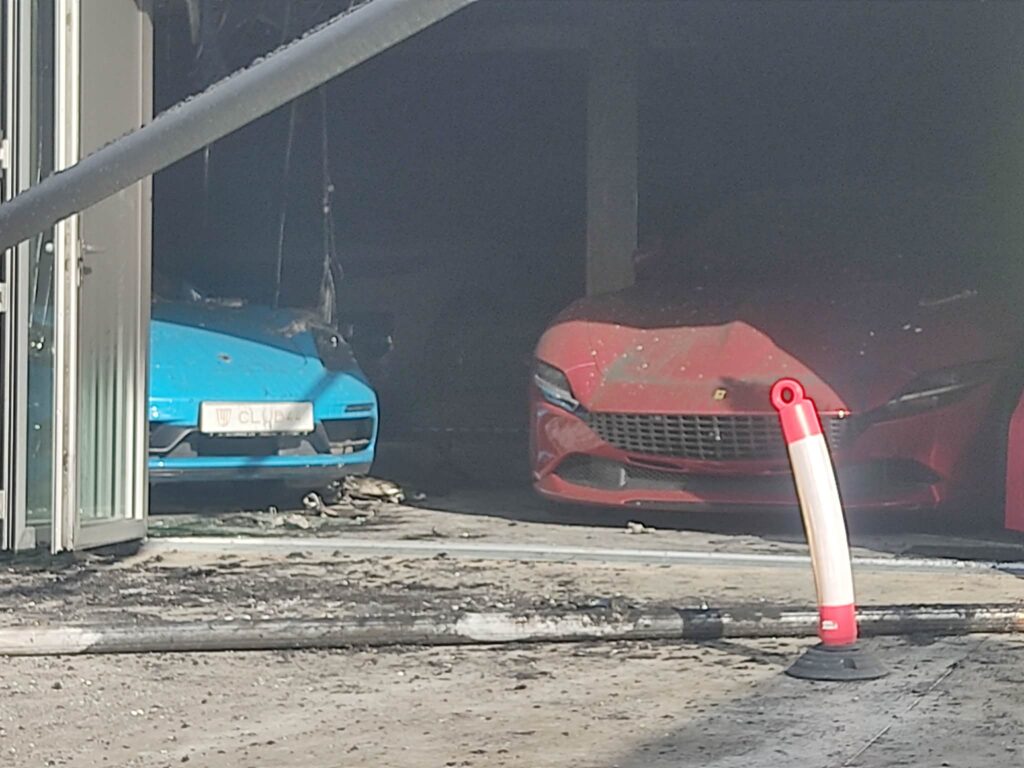 Από την πυρκαγιά καταστράφηκαν ολοσχερώς τα δύο οχήματα που βρίσκονταν στον εξωτερικό χώρο, ενώ άλλα έξι οχήματα στον εσωτερικό χώρο υπέστησαν ζημιές.