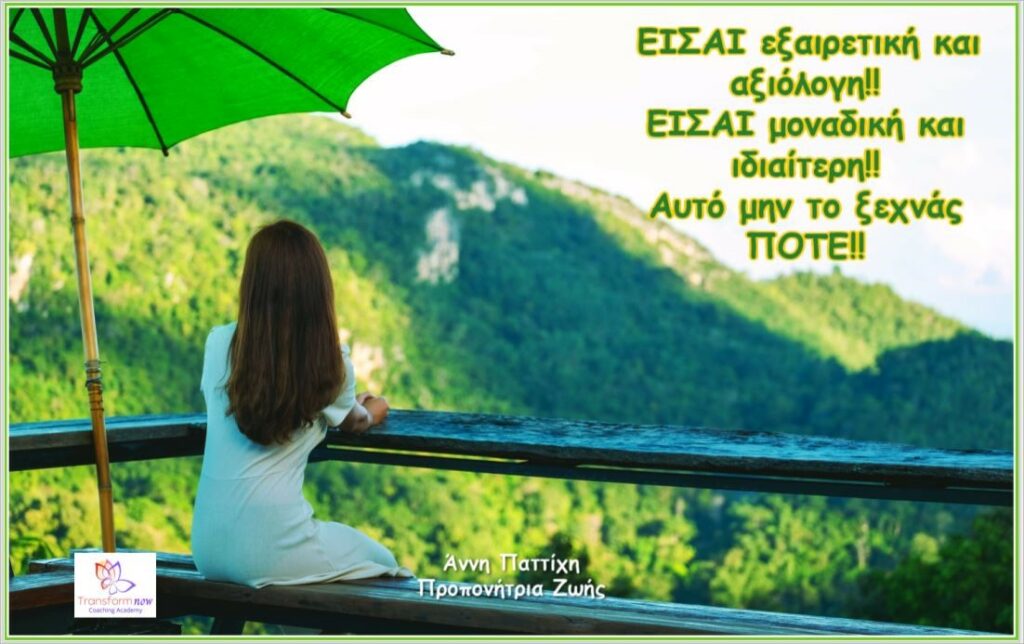 - Επικεντρώσου στα θετικά: Γράψε μια λίστα με τα θετικά σου χαρακτηριστικά και τα επιτεύγματά σου. Αναγνώρισε τι σε κάνει μοναδική και αξιόλογη. Γιατί ΕΙΣΑΙ εξαιρετική και αξιόλογη!! Αυτό θα σε βοηθήσει να ενισχύσεις την αυτοεκτίμησή σου.