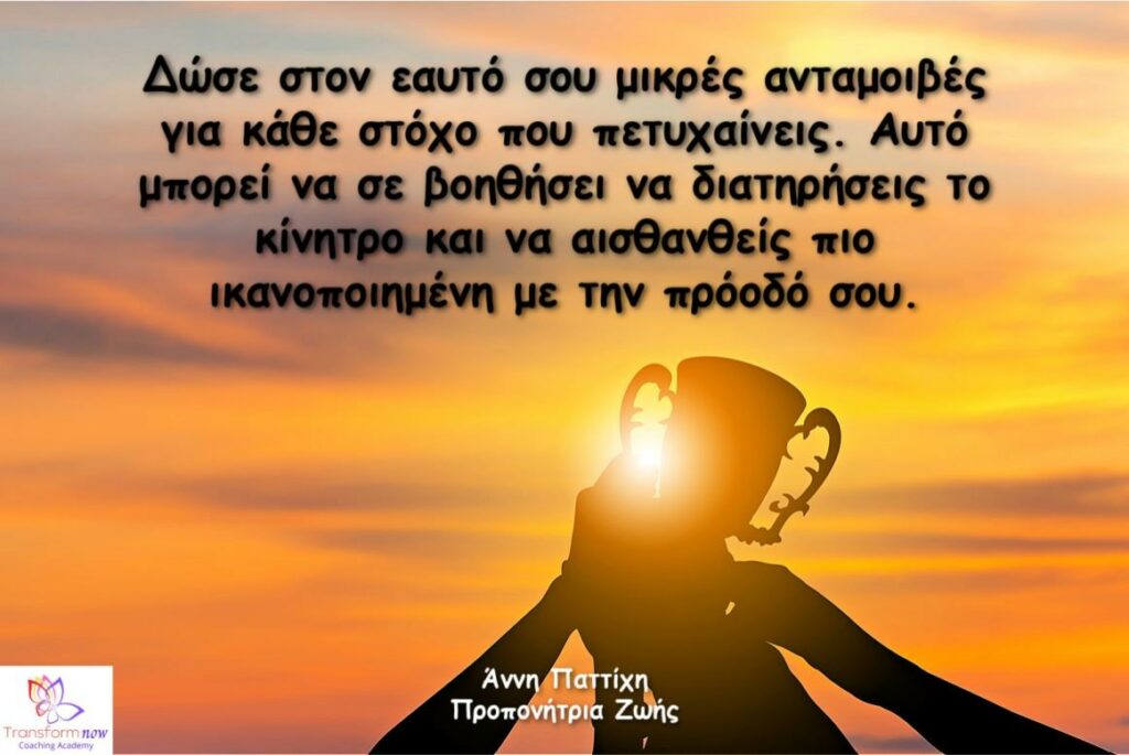 - Αντάμειβε τον Εαυτό σου: Δώσε στον εαυτό σου μικρές ανταμοιβές για κάθε στόχο που πετυχαίνεις. Αυτό μπορεί να σε βοηθήσει να διατηρήσεις το κίνητρο και να αισθανθείς πιο ικανοποιημένη με την πρόοδό σου.