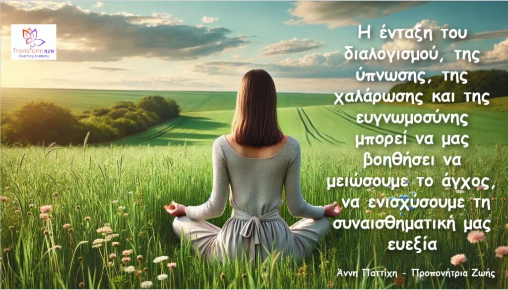 Η ένταξη του διαλογισμού, της ύπνωσης, της χαλάρωσης και της ευγνωμοσύνης μπορεί να μας βοηθήσει να μειώσουμε το άγχος, να ενισχύσουμε τη συναισθηματική μας ευεξία και να βελτιώσουμε την αυτοσυγκέντρωσή μας, δημιουργώντας έτσι μια πιο ήρεμη και ισορροπημένη καθημερινότητα. Θα μας βοηθήσει να βλέπουμε τη ζωή πιο αισιόδοξα και να είμαστε ευγνώμονες για αυτά που έχουμε.