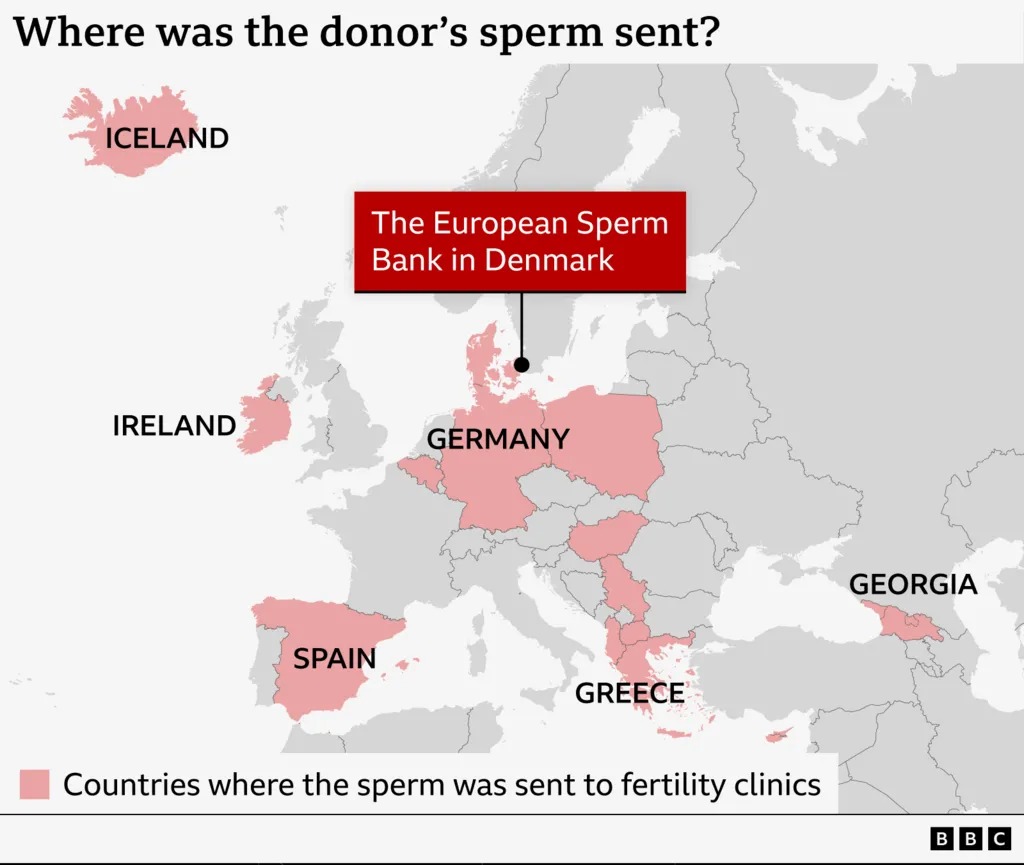 Το σπέρμα του δότη δόθηκε σε 67 κλινικές γονιμότητας σε 14 χώρες, ανάμεσά τους και η Κύπρος. Συγκεκριμένα στάλθηκε σε Δανία, Βέλγιο, Ισπανία, Ισλανδία, Γερμανία, Ελλάδα, Κύπρο, Σκόπια, Γεωργία, Ουγγαρία, Ιρλανδία, Πολωνία, Αλβανία και Σερβία.