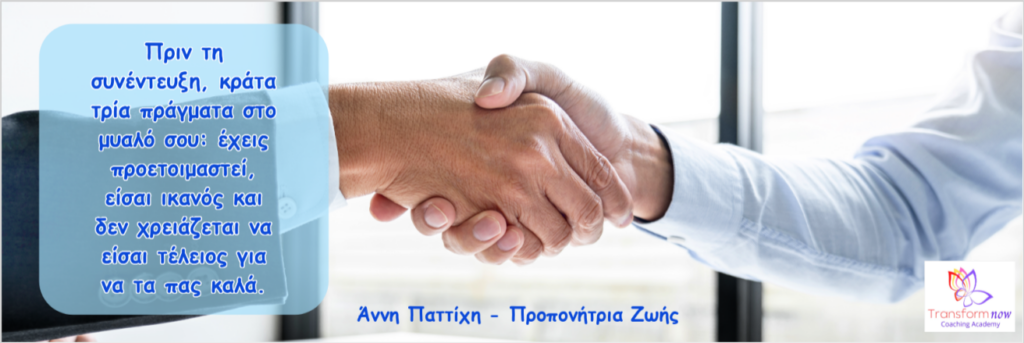 Και να θυμάσαι: δεν χρειάζεται να είσαι τέλειος. Κανείς δεν το περιμένει αυτό και δεν υπάρχει τελειότητα. Αν δεν ξέρεις κάτι, μπορείς να το πεις με ειλικρίνεια και να εξηγήσεις πώς θα το έψαχνες ή πώς θα το διαχειριζόσουν. Αυτό συχνά δείχνει ωριμότητα.