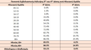 Το Υπουργείο Υγείας ανακοινώνει πως σύμφωνα με δεδομένα που καταγράφονται από την Μονάδα Παρακολούθησης Υγείας, μέχρι την Δευτέρα 11 Ιουλίου, καταγράφηκαν ποσοστά πλήρους εμβολιασμού (δύο...