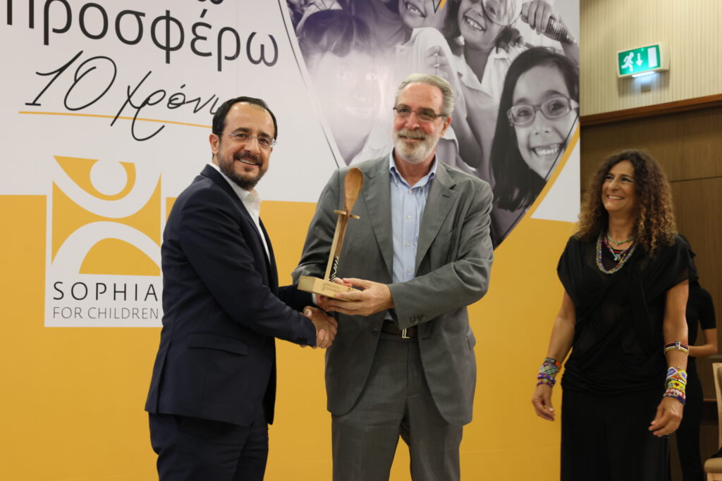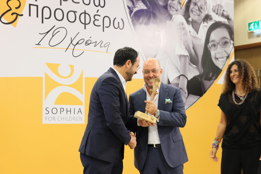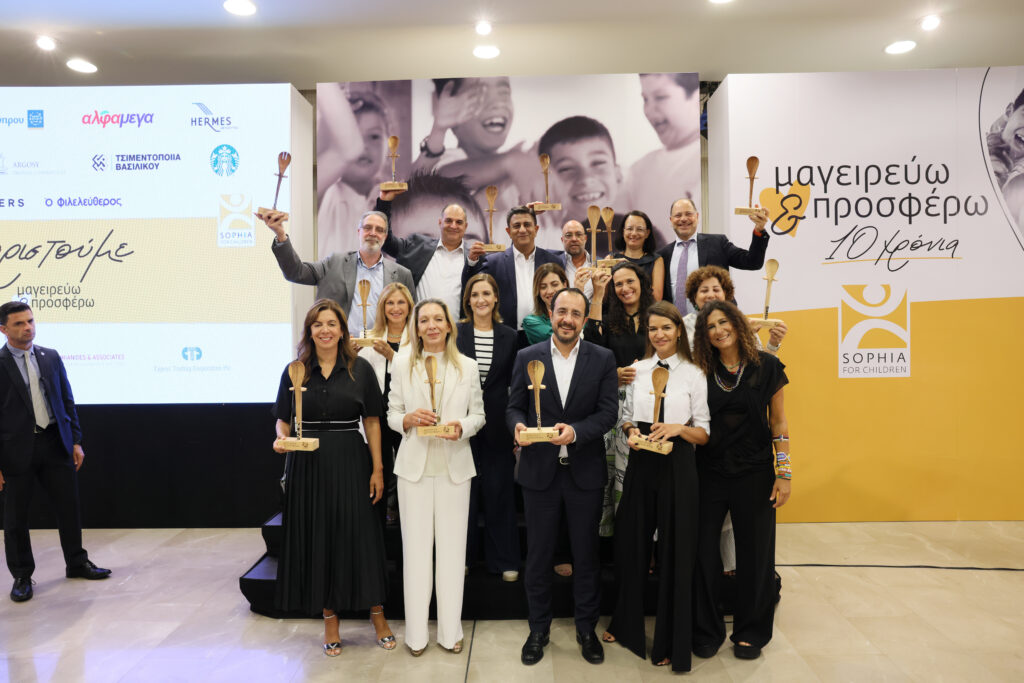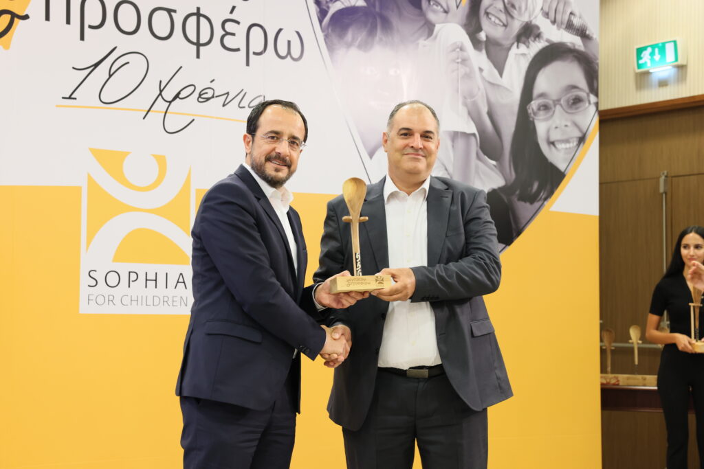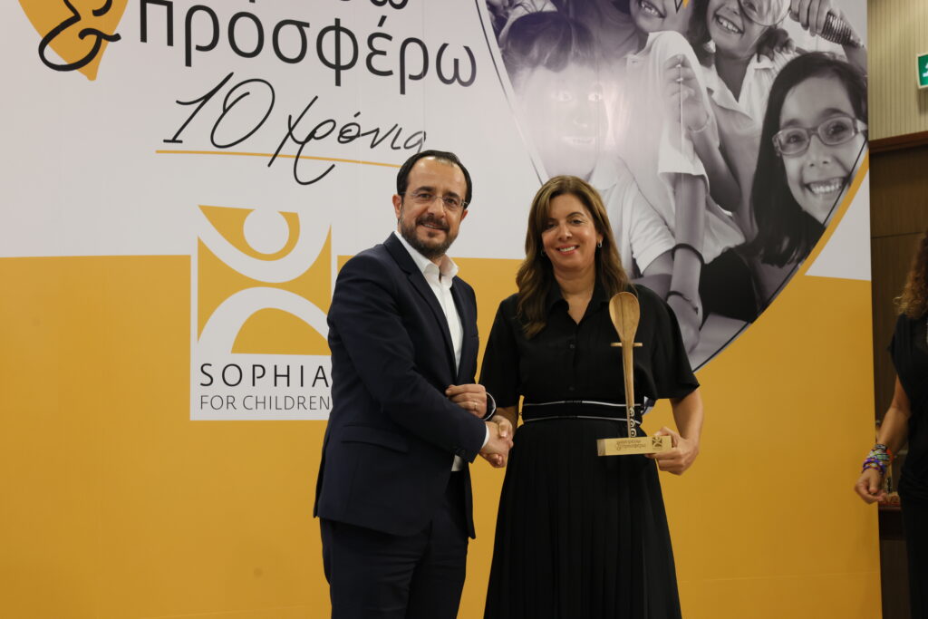 Ο Πρόεδρος της Δημοκρατίας Νίκος Χριστοδουλίδης και το ίδρυμα «Σοφία για τα Παιδιά» παρέδωσαν βραβεία σε 15 εταιρείες, χωρίς τη συμβολή των οποίων θα ήταν αδύνατον να στηθούν οι κουζίνες του προγράμματος.