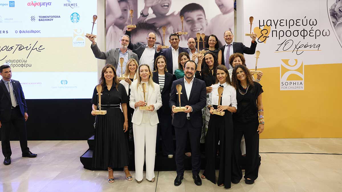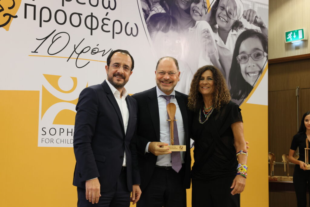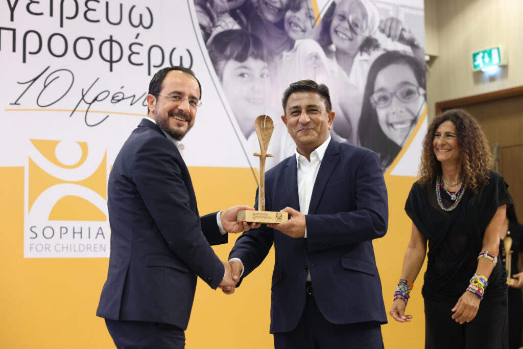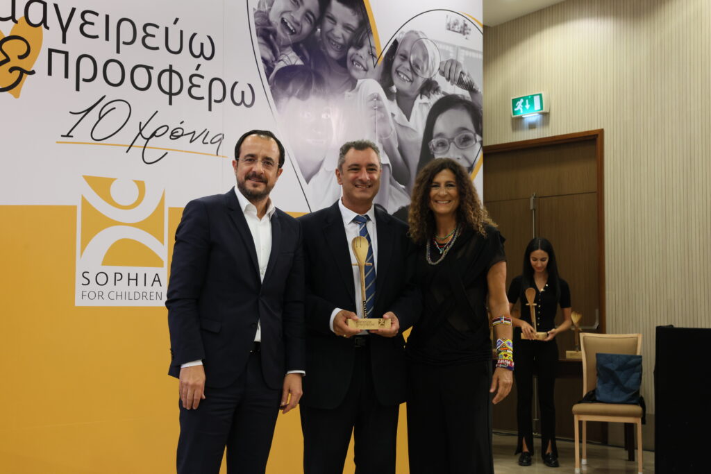 Ο Πρόεδρος της Δημοκρατίας Νίκος Χριστοδουλίδης και το ίδρυμα «Σοφία για τα Παιδιά» παρέδωσαν βραβεία σε 15 εταιρείες, χωρίς τη συμβολή των οποίων θα ήταν αδύνατον να στηθούν οι κουζίνες του προγράμματος.