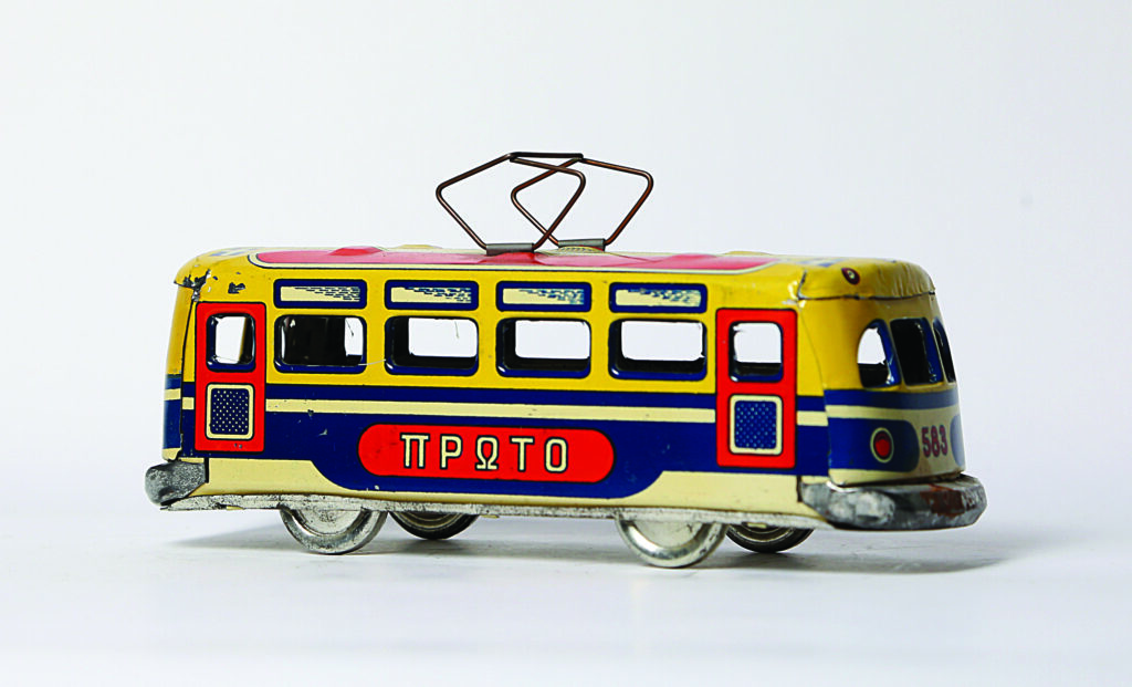 Πρώτο – Ένα τσίγκινο βαγόνι της πρώτης γραμμής του τραμ από τον Α. Ανανιάδη, κατασκευής της δεκαετίας του 1950. Επί μια εικοσαετία ο Ανανιάδης κατασκεύαζε τσίγκινα βαγόνια και λεωφορεία λουξ, καθώς και τουριστικά πούλμαν με διάφορες επιγραφές από δρομολόγια, όπως το κλασικό Κυψέλη-Παγκράτι, αλλά και το δρομολόγιο Αθήνα- Παρίσι