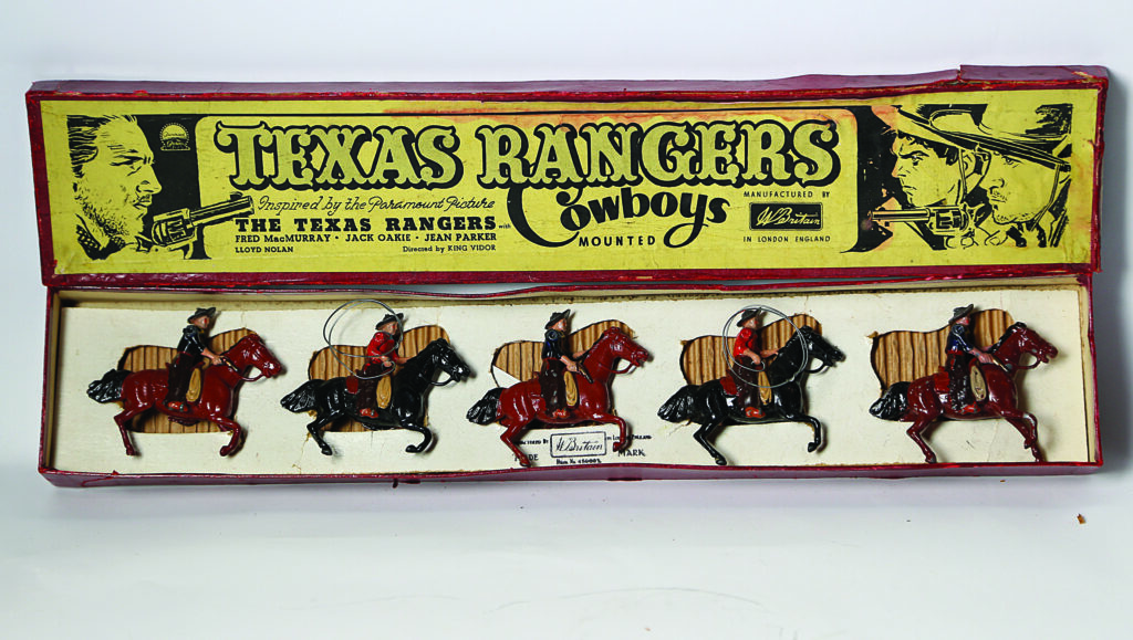 The Texas Rangers – Ένα πολύ σπάνιο σετ υπ’ αριθμόν 1.508 της αγγλικής εταιρείας WBritain, εκτός καταλόγου και σειράς παραγωγής. Η ετικέτα του κουτιού απεικονίζει τρεις καουμπόηδες με πιστόλι και δύο με λάσο και αναγράφει: «Texas Rangers, εμπνευσμένο από την ταινία της Paramount Picture με τους Fred MacMurray, Jack Oakie, Jean Parker, Lloyd Nolan, σε σκηνοθεσία King Vidor». Οι καουμπόηδες κατασκευάστηκαν από την εταιρεία Wbritain στο Λονδίνο το 1937, ενώ η ταινία «Texas Rangers» προβλήθηκε το 1936. Ο Arnold Rolak χρειάστηκε 16 χρόνια για να πείσει τον John Ruddle να διαθέσει προς πώληση το μοναδικό γνωστό αυθεντικό σετ, το οποίο ανήκε στη συλλογή του. Τελικά πωλήθηκε το Δεκέμβριο του 2000 σε δημοπρασία των Christie’s