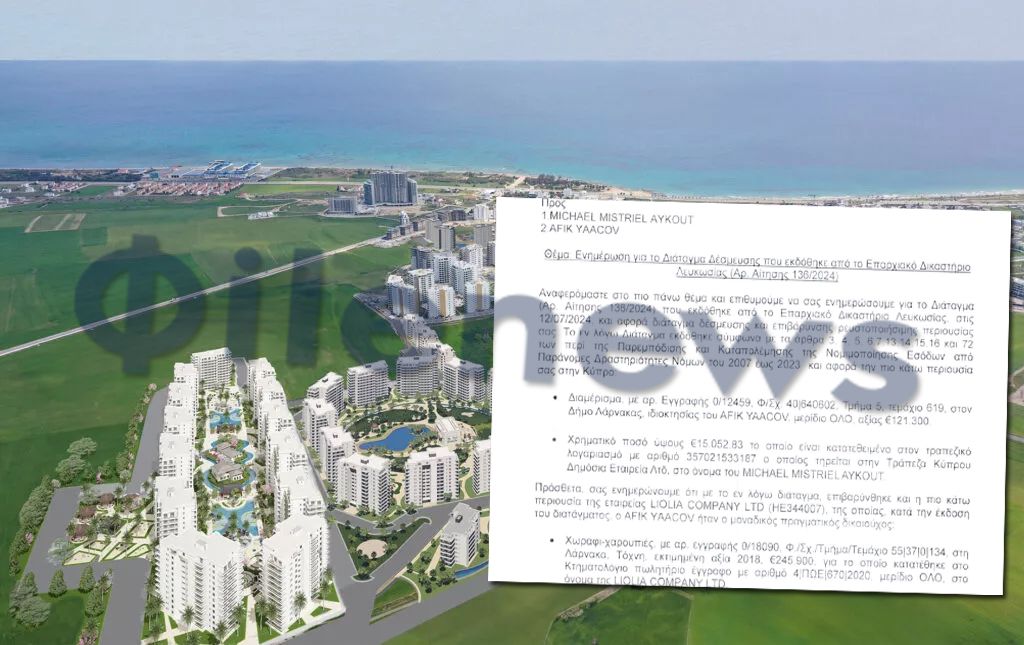 Όπως αποκάλυψε ο «Φ» από τον Ιούνιο του 2024 για τις αναπτύξεις του ομίλου «Afik» στα κατεχόμενα καταζητούνται οι δύο γιοι του κατηγορούμενου Σιμόν Μιστριέλ Αϊκούτ. Πέραν από τον 52χρονο Τζακ Γιάκοβ Αφίκ ένταλμα σύλληψης εκδόθηκε και για τον 49χρονο Μάικλ Μιστριέλ Αϊκούτ. Αμφότεροι παρουσιάζονται ως εταιρικά στελέχη του ομίλου. Όπως και ο πατέρας τους, είναι κάτοχοι διαβατηρίων Ισραήλ και Πορτογαλίας.