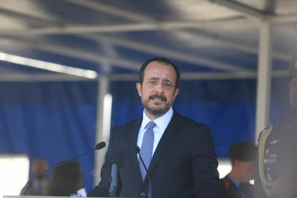 Σε δηλώσεις του στους δημοσιογράφους, μετά τη στρατιωτική παρέλαση, ο Πρόεδρος της Δημοκρατίας είπε ότι «θέλω να ξεκινήσω αναφερόμενος στο τελετουργικό της σημερινής μέρας, γιατί έχει ιδιαίτερη σημασία να γνωρίζουν και οι νέες γενιές. Ξεκινήσαμε τη μέρα από τα Φυλακισμένα Μνήματα για να τιμήσουμε όλους αυτούς που αγωνίστηκαν, έδωσαν τη ζωή τους για να υπάρχει η Κυπριακή Δημοκρατία. Ακολούθως πήγαμε στο Προεδρικό Μέγαρο για να τιμήσουμε τον πρώτο Πρόεδρο της Κυπριακής Δημοκρατίας, Αρχιεπίσκοπο Μακάριο, ακολούθως στο Μνημείο Αντίστασης για να τιμήσουμε όλους αυτούς που αγωνίστηκαν κατά τις τουρκο-ανταρσίες, ακολούθως το 1967, το 1974 για να υπερασπιστούν την Κυπριακή Δημοκρατία και ακολούθως ήρθαμε εδώ για να τιμήσουμε όλους αυτούς που σήμερα υπερασπίζονται την Κυπριακή Δημοκρατία. Μια Κυπριακή Δημοκρατία που συμπληρώνει 65 χρόνια ύπαρξης, μια Κυπριακή Δημοκρατία που σε νηπιακή ηλικία δέχθηκε βαθύτατο πλήγμα, αλλά παρόλα αυτά με τον κυπριακό λαό να αντιστέκεται κατάφερε 30 χρόνια αργότερα να γίνει κράτος μέλος της ΕΕ, να αναβαθμίζεται συνεχώς και η δικής μας υποχρέωση σήμερα είναι να πράττουμε καθημερινά ό,τι είναι δυνατόν για να την αναβαθμίζουμε ακόμη περισσότερο αλλά και για να πετύχουμε τον ύψιστο μας στόχο που δεν είναι τίποτε άλλο από την απελευθέρωση και την επανένωση της πατρίδας μας.